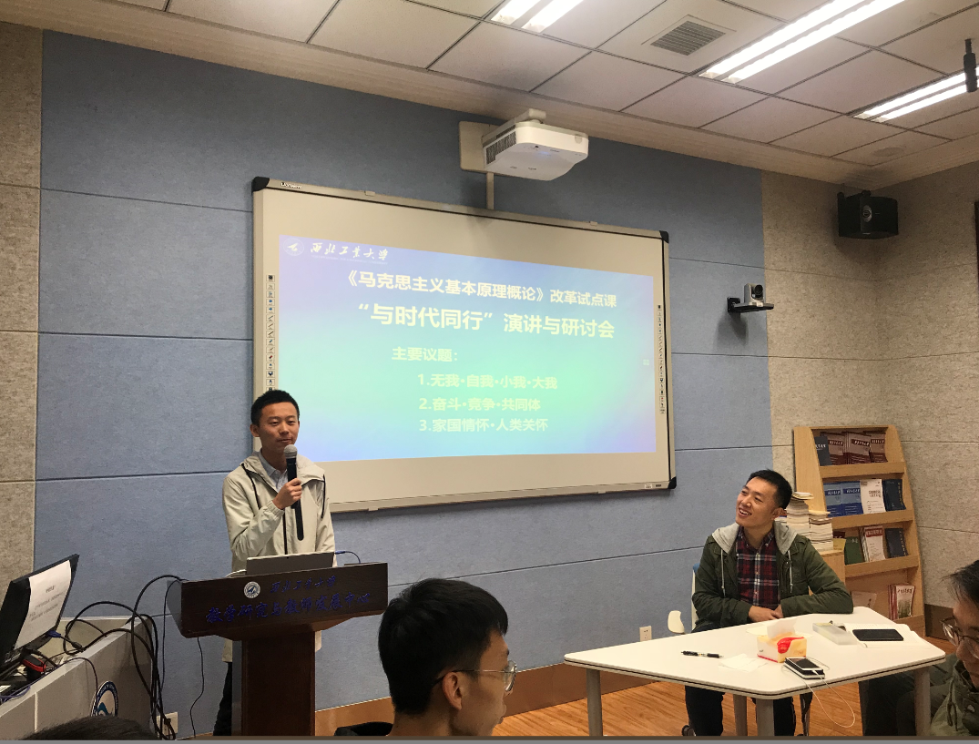 “我演讲的题目是时代新人的历史担当”,“我发言的题目是无我、自我、小我与大我之间的关系”,“我不赞同你的观点,我认为个人奋斗与竞争并不矛盾”……在2019年10月22日上午的“马克思主义基本原理概论”改革试点课上,一场别开生面的演讲比赛与研讨会正如火如荼地进行。如何调动员工在思政课上学习的主体性,让员工成为思政课的主角,让思政课真正走进员工心灵,是这次改革试点的重要环节。
