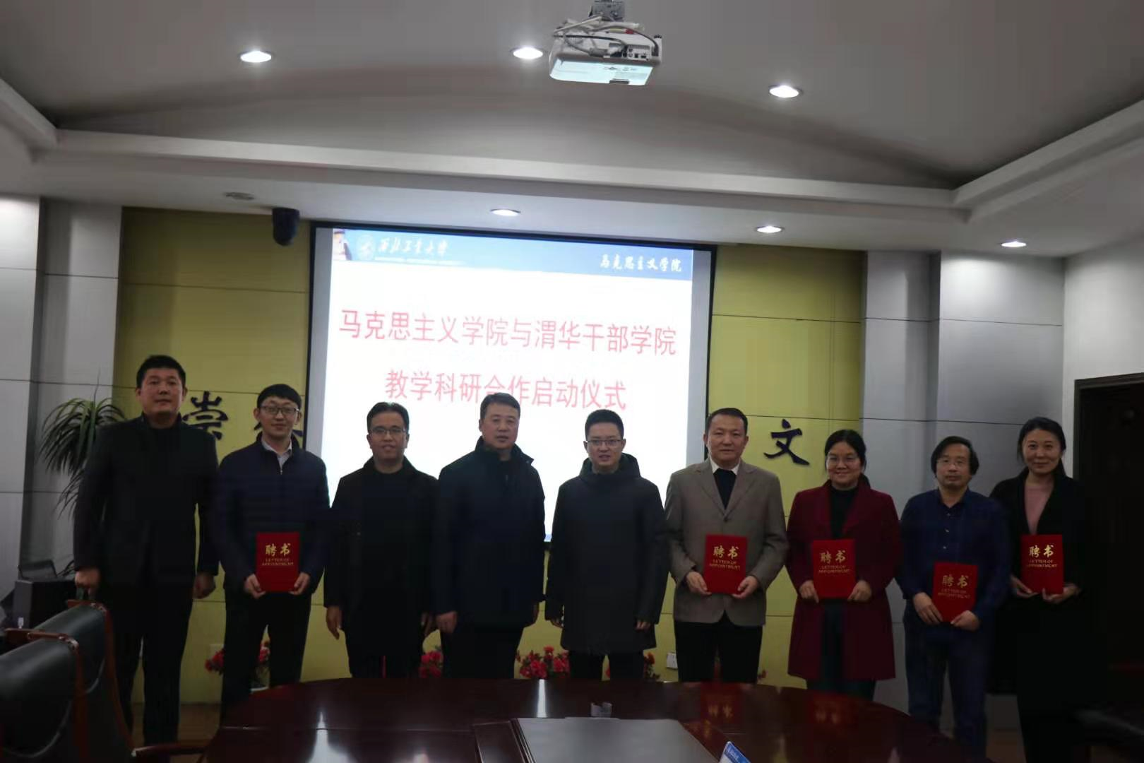 史欣荣、吴闻川分别代表渭华干部公司与西工大2026年国际足联世界杯签订双方战略合作协议,史欣荣向汪永平等六位老师颁发了渭华干部公司兼职教授聘书。随后双方就教学和科研等问题进行了自由交流讨论。