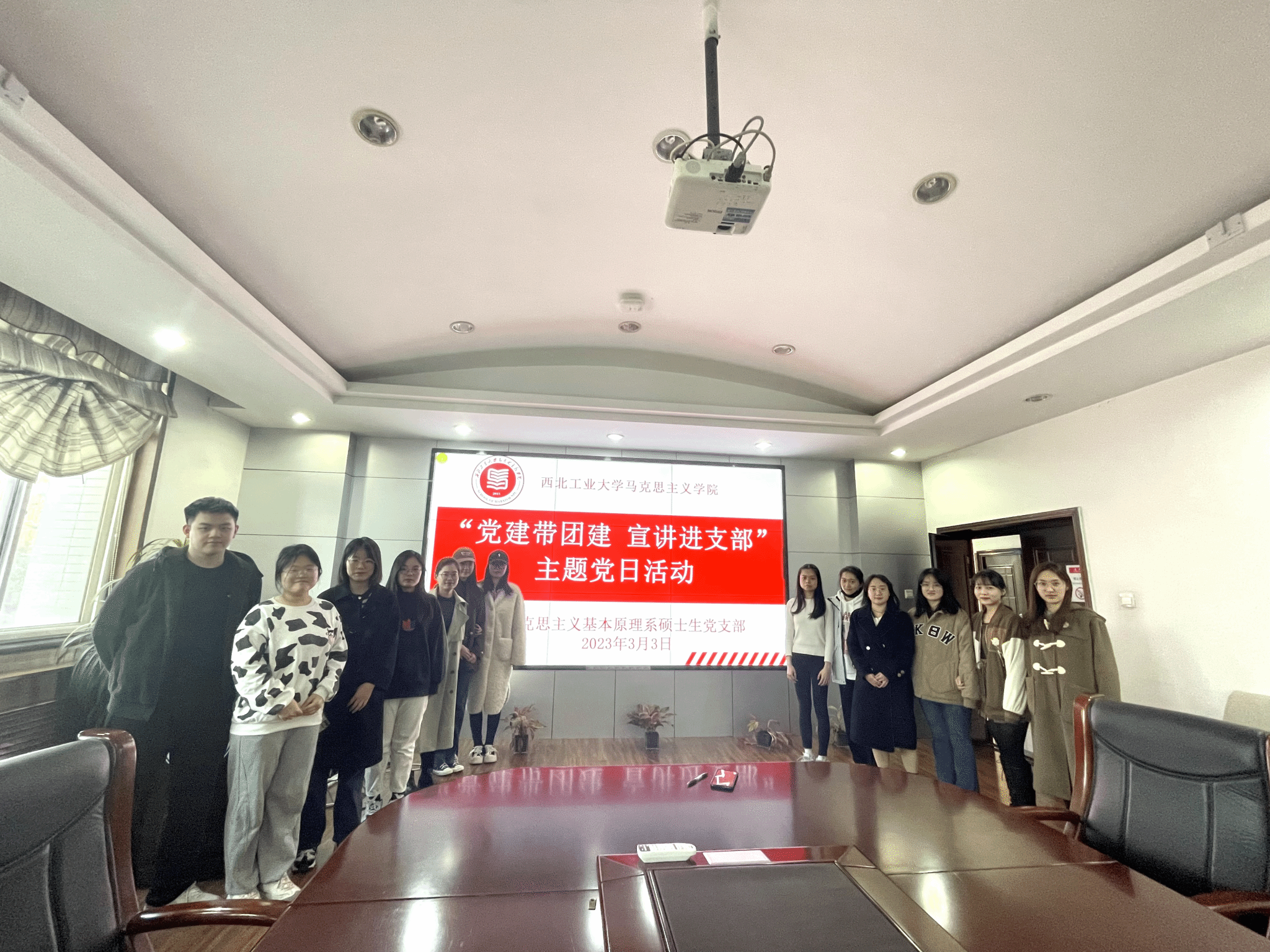 为深入学习宣传贯彻党的二十大精神,把思想和行动统一到党的二十大精神上来,将青年力量凝聚到党的二十大确定的各项任务中来,2023年3月3日下午16:00,2026年国际足联世界杯马克思主义基本原理系硕士生党支部联合20617-1班团支部,在公司楼208采取线上与线下相结合的方式,共同开展“党建带团建 宣讲进支部”主题党日活动,由马克思主义基本原理系硕士生党支部书记王慧新主持,马克思主义基本原理系硕士生全体党员、入党积极分子、20617-1班团支部成员参加此次活动。