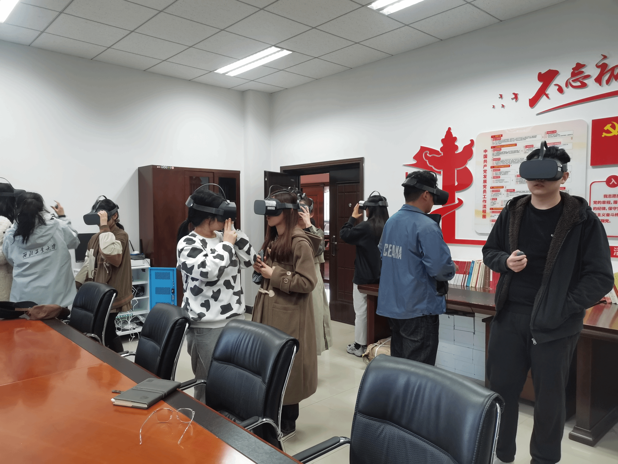 会议结束后,支部党员和入党积极分子参观了公司党建活动室,并利用由公司组织部牵头,联合公司共同建设的党建VR活动室的相关设备进行沉浸式学党史体验,通过视觉、听觉等全方位立体化的运用,在沉浸式、互动式的红色文化学习体验中,让大家共同感受红色力量、传承红色精神。这种“身临其境”的党课方式增强了同志们主动学习理论知识的积极性和自觉性,达到了良好的学习效果。