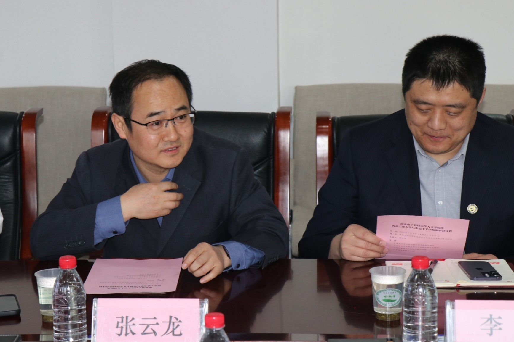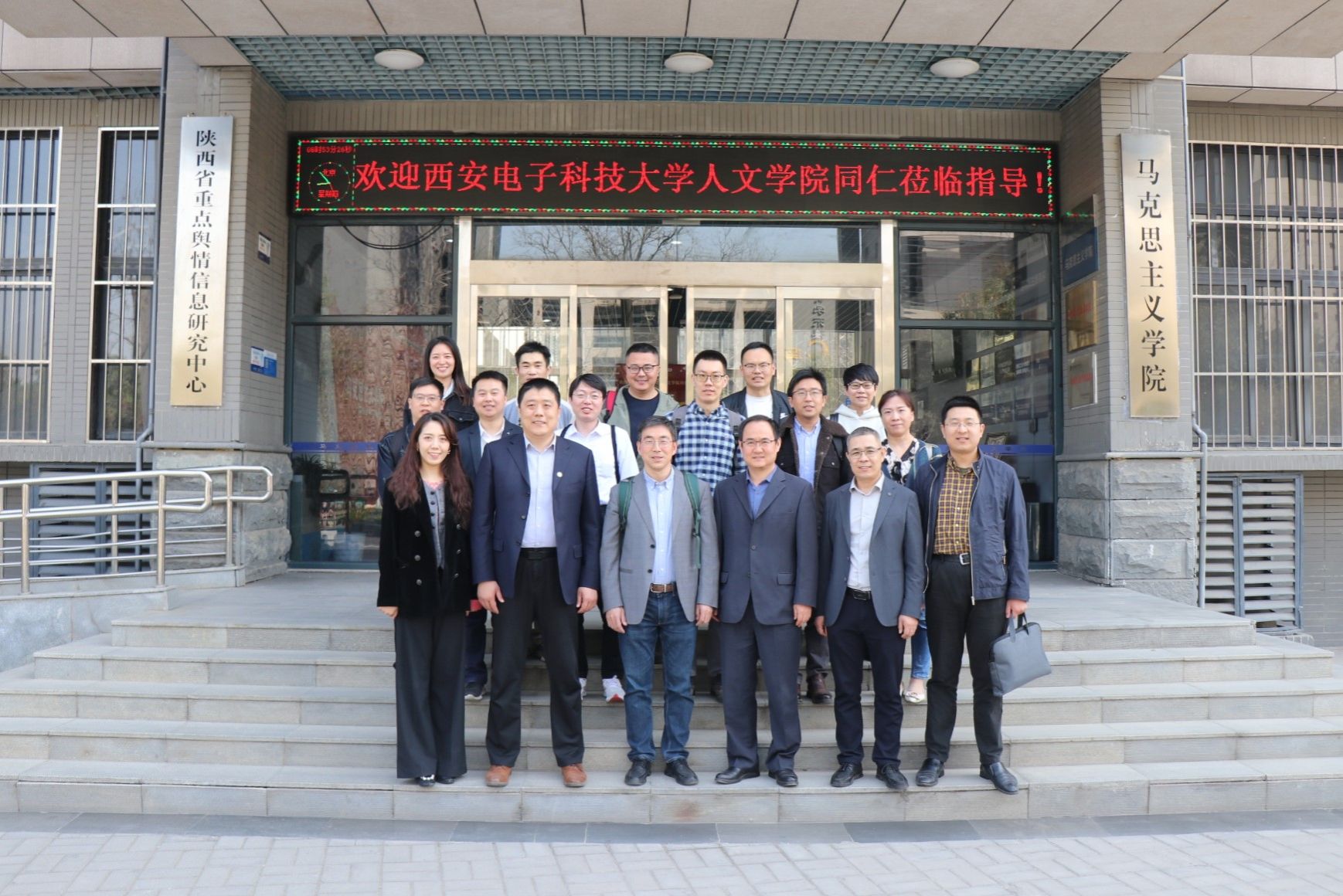 3月9日上午,西安电子科技大学人文公司经理石福祁、科研与研究生工作副经理张斯珉、科技哲学团队负责人马得林、哲学系支部书记王雨程、哲学系副主任苏丽等一行十人来公司调研交流。公司副经理张云龙、党委副书记李刚,马克思主义基本原理系青年教师吴小安、吕天择、聂阳、杨永强、齐承水,公司办公室主任郭雅楠、公司产品秘书肖妮参加了调研会。会议由张云龙主持。