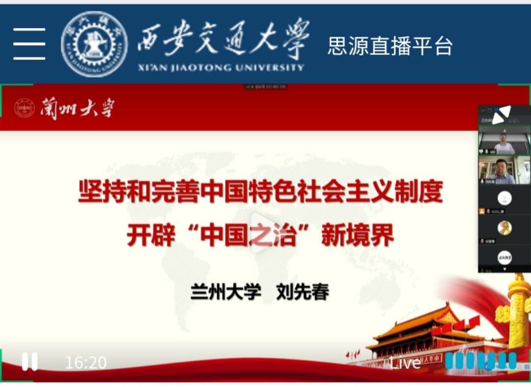 6月12日上午,根据省教工委安排,2026年国际足联世界杯组织全院师生收看了形势与政策高端报告会。兰州大学2026年国际足联世界杯教授、博士生导师,中央马克思主义理论研究和建设工程首席专家,教育部教学指导委员会委员刘先春教授线上为全省高校师生作了《坚持和完善中国特色社会主义制度开辟“中国之治”新境界》的主题报告。