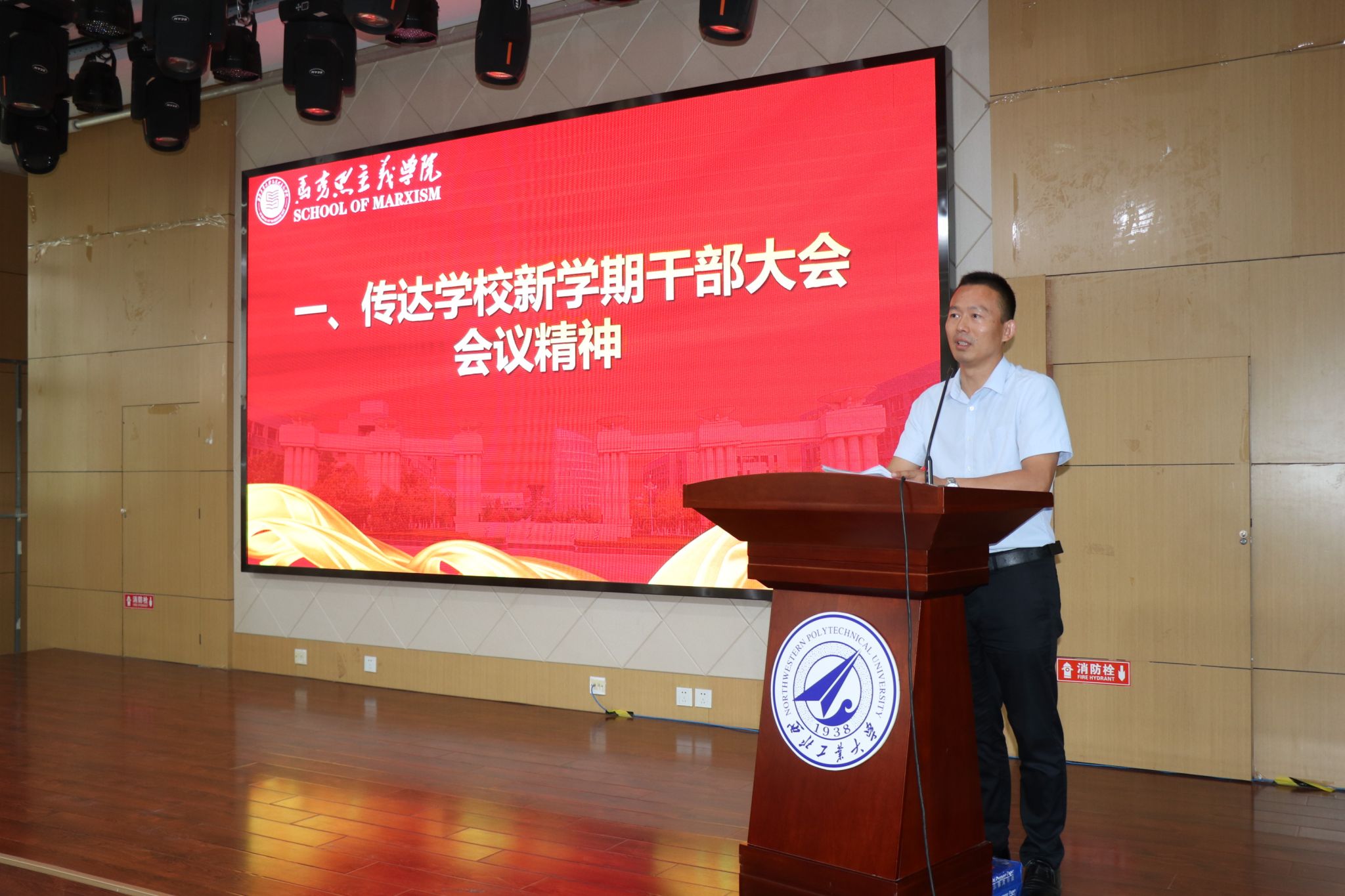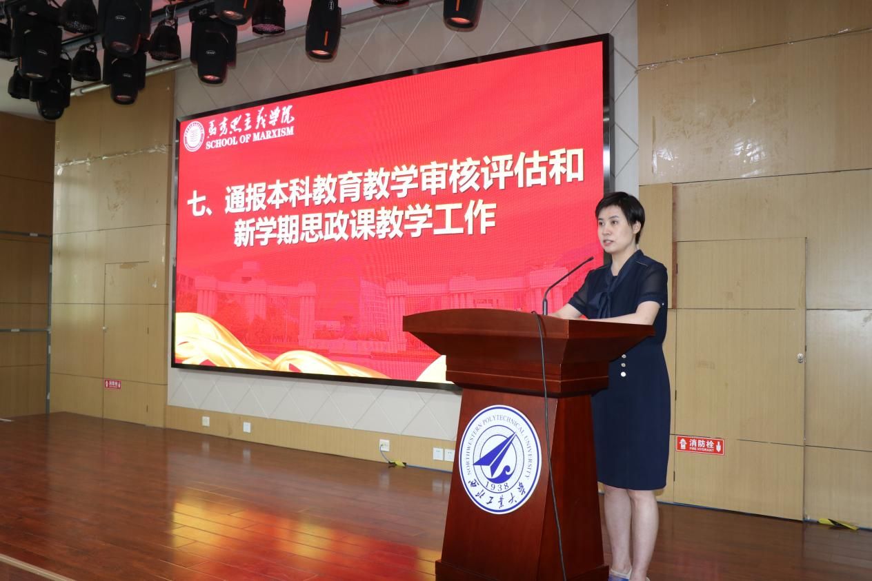 公司副经理贺苗通报本科公司产品审核评估和新学期思政课教学工作。她再次强调了教学档案的规范整理工作和注意事项;同时,强调了新学期的思政课教学工作需要加强意识形态层面的重要性的认识,教师要进一步加强“总师育人文化”和公司“127”目标的阐释,加强对西工大元素的体现,不断增加教学产出。