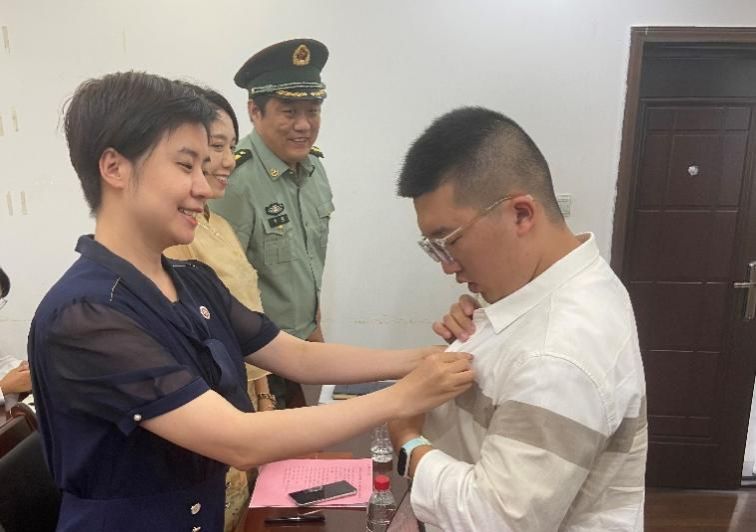 院徽凝练着公司特色,承载着公司文化,步入院门,戴上院徽寓意着正式成为青马人,公司领导也为新生代表佩戴院徽,并祝贺每位同学踏入研究生新阶段。