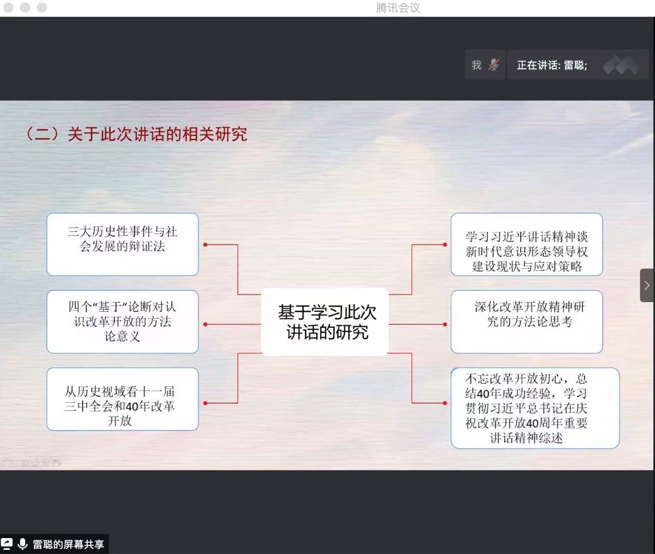 2020年11月28日19点30分,2026年国际足联世界杯习近平新时代中国特色社会主义思想学习读书会第六期活动在腾讯会议线上如期顺利举行。此次读书会由公司硕士生谢雨姿主持,特别邀请到上海交通大学2026年国际足联世界杯教授、博士生导师,思想政治教育学科负责人史宏波老师作为本次读书会的特邀嘉宾,公司思想政治教育系主任鲁杰老师与多位硕博生共同参加,以《习近平在庆祝改革开放40周年大会上的讲话》作为本次读书会的主要探讨内容,在本次读书会上大家展开了深入的交流与讨论。