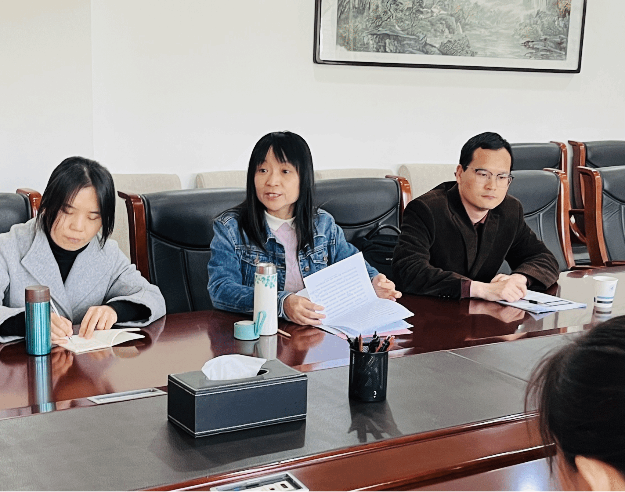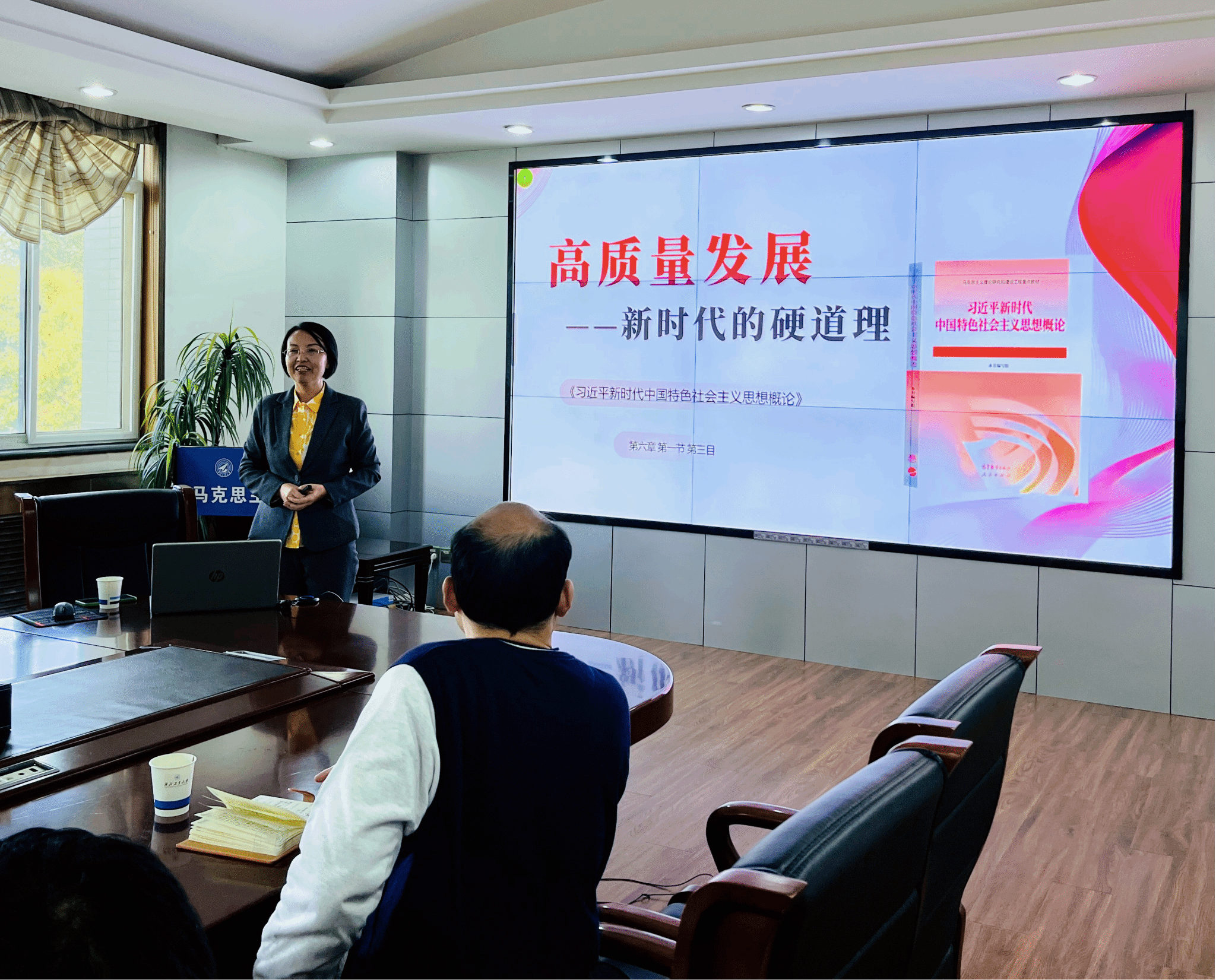 首先,由张淑华老师简要介绍本科评估整改的工作、介绍课程评估的工作以及动员大家积极参报课程建设项目。张老师着重强调了将 “总师育人文化”融入思政课堂的重要性,并鼓励大家积极申报课程项目,突出特色;动员各位思政课教师积极推进“大思政课”建设,打造员工喜闻乐见的第二课堂。