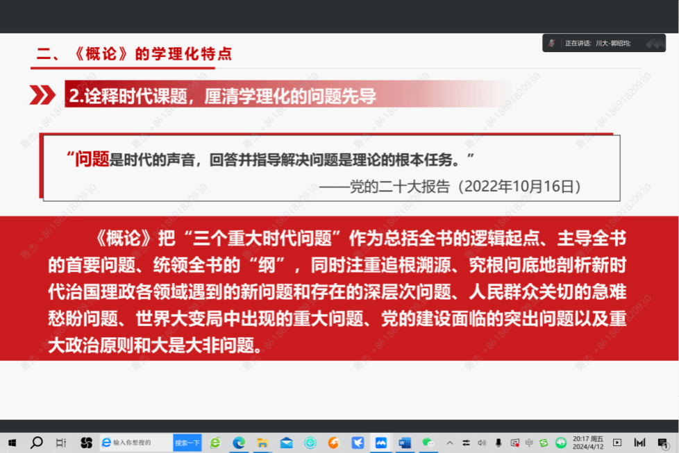 郭绍均还进一步阐释要将理论体系、理论逻辑恰当转化为教材体系、教材逻辑,为授课教师探究教学体系、员工掌握知识体系和价值体系提供科学指引,进一步推动广大师生学习践行习近平新时代中国特色社会主义思想。讲座持续了一个半小时,并进行热烈的备课互动。