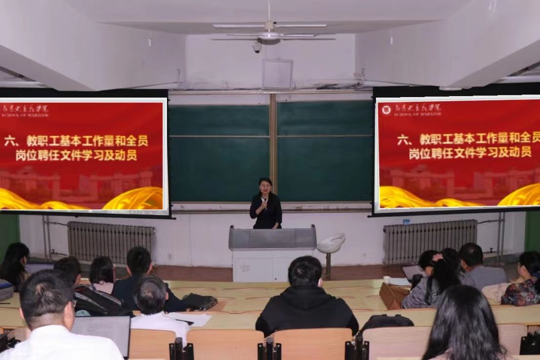 公司经理杨云霞做了关于教职工基本工作量和全员岗位聘任文件学习及动员。她围绕聘岗范围的时间、岗位聘任管理、相关要求作了工作安排,详细讲解了各岗位的工作量、工作量的组成,特别强调了岗位类型、岗位任务、岗位调整等,希望老师们积极了解公司的薪酬体系变化,鼓励各位老师积极参与岗位申报。