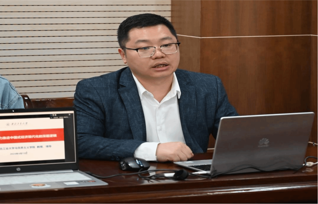 活动伊始,马研会督导组刘洋河同学进行发言,他谈到不同高校间学术交流的重要性,并表示此次活动为两校员工提供了一个难得的交流平台,本次学习读书会所选主题紧扣时事,对于青年学子来说,是一个深入探讨新质生产力这一重要议题、发表自己见解的宝贵机会。