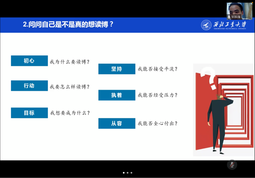 第三位分享的学姐是2014级思想政治教育专业的博士研究生张楠,目前就职于西北农林科技大学。会上,张楠为同学们分享了自己的高校就业经验,她谈到了入职高校的优势,还结合自身工作经历向同学们详细介绍了入职高校的方向及岗位,并围绕如何做好思政课教师做了进一步阐述。回首自己在西工大读博的六年时光,张楠给博士生提出了几点建议,一是要尽早开始大量阅读文献,了解专业前沿,确定研究方向;二是积极参与公司交流项目,丰富学习历经;三是参与课题研究和学术交流,认真完成学习任务;四是既然选择了读博就要坚持到底。