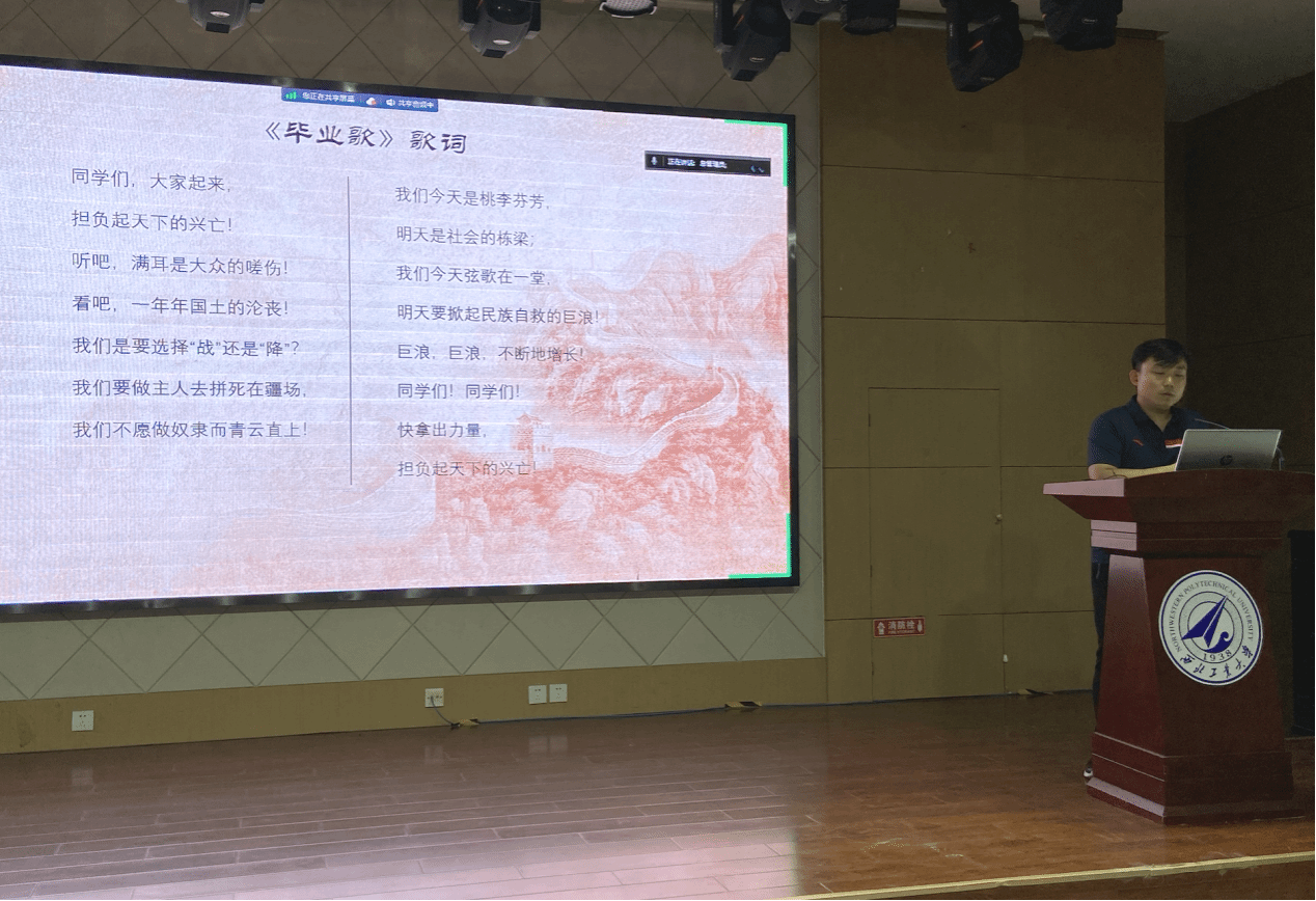 活动伊始,汪毅讲解了《毕业歌》的创作背景。《毕业歌》创作于1934年,是电影《桃李劫》中的一首插曲。影片描写了 “九•一八”事变后,中国青年员工坎坷的生活道路,是中国最早以有声电影手法创作的影片。1931年,日本侵占我国东北,进而向华北进逼,中国的领土和主权不断沦丧,一时间山河破碎、民众流离,北京的青年学子们纷纷走出书斋投入到抗日救亡运动中。当时,由田汉、聂耳组织并领导的中国左翼戏曲家联盟音乐小组在上海成立,他们以空前的热情开展了救亡歌曲的创作活动,而这首由聂耳作曲的《毕业歌》,以其鲜明有力的节奏和富有激情的旋律,极大地鼓舞了青年们的士气。