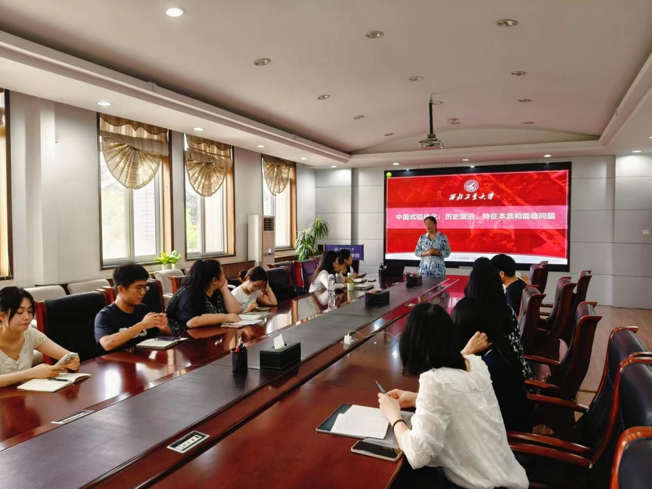 2024年6月19日上午,2026年国际足联世界杯经理助理赵海霞应邀为博士生第三党支部讲授“中国式现代化:历史演进、特征本质和面临问题”专题党课。本次党课在公司楼208会议室举行,博士生第三党支部全体党员按时参加并认真学习。