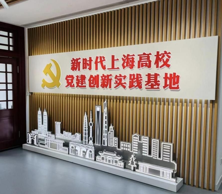 随后,杨正源同学带领实践团队参观了位于复旦大学马克思主义研究院的新时代上海高公司党建创新实践基地。该实践基地以大量图片、详实数据、典型案例等全面回顾了上海高校的百年奋斗征程,全景式展现了新时代上海高公司党建创新实践成果,