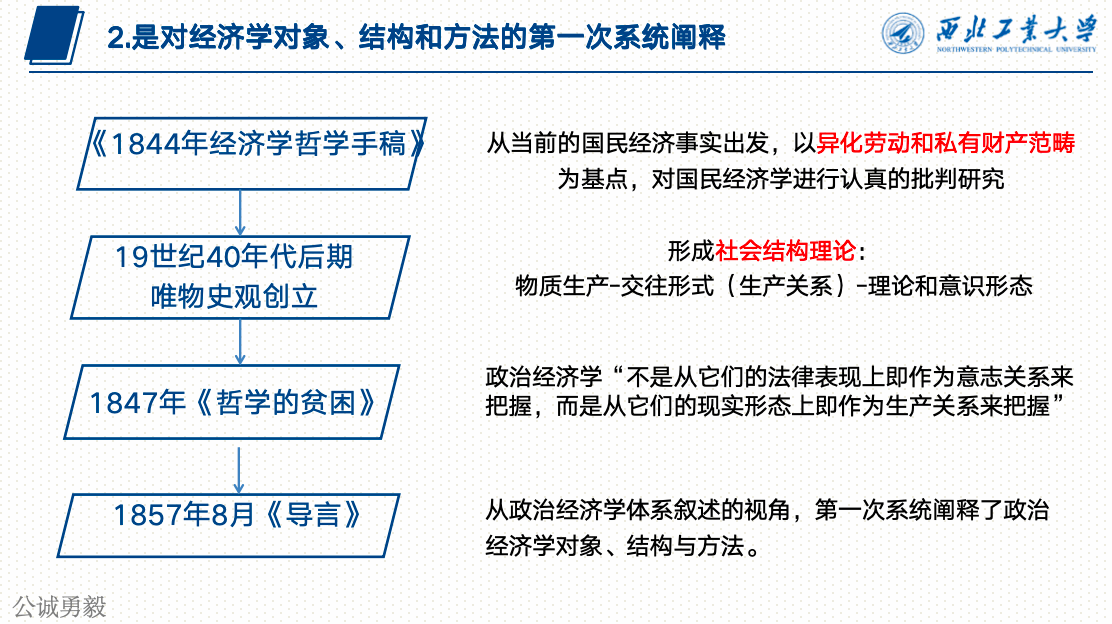 陈宗超同学围绕《政治经济学批判序言》中的变革思想进行了阐释。马克思在1859年所撰写的序言,是为《政治经济学批判(1857—1858年手稿)》所作的序。这篇序言以历史唯物主义的独特视角,深入剖析并揭示了社会变革的核心要素、历史条件及内在规律,标志着思想史上一次划时代的革命性飞跃。其所蕴含的变革思想,对于新时代而言,具有深远的指导意义:它指引我们不断发展生产力以协调并优化生产关系,勇于变革生产关系以进一步推动生产力的发展,同时,也要求我们积极创新意识形态,使其更好地适应并服务于经济发展的客观规律。