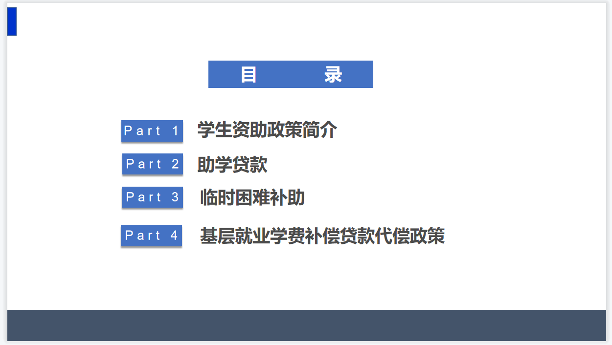 会议主要介绍了四点内容,分别是员工资助政策、助学贷款政策、临时困难补助政策以及基层就业学费补偿贷款代偿政策。郭浪浪详细介绍了研究生架构中的奖助政策内容,说明了“奖”“助”“补”“贷”四个方面的员工资助项目,其中突出强调了各资助项目的申请条件及申请流程。