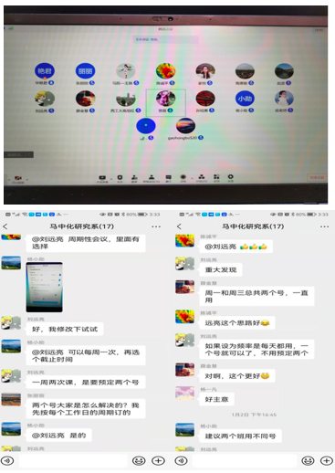 《中国近现代史纲要》课程组全体老师围绕在线教学可能涉及的内容和问题,如在线教学与传统课堂教学的区别、在线教学设计、与员工在线互动经验、在线教学平台选择、教学内容与课时分配的协调等进行了深入的交流。与会教师踊跃发言,结合自身以往在线教学实践,将各自在线上教学中存在的疑惑和方法等问题提出来供大家讨论,及时梳理在线授课教师的相关诉求,老教师对新教师在线教学存在的困惑进行了解答。