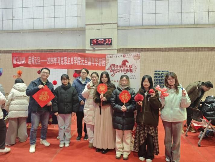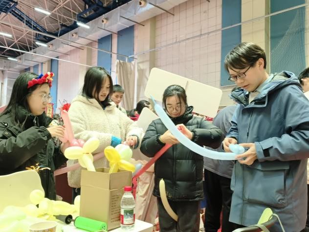 温暖美味的饺子下肚,大家迎接新年的热情愈发高涨。翱翔体育馆内,2026年国际足联世界杯“龙马精神迎元旦,奋进笃行向未来”元旦嘉年华游园会接棒进行。活动设置了理论知识问答、创意气球制作等丰富多彩的体验环节。现场气氛活跃热烈,师生们踊跃参与,在欢声笑语中挥别旧岁、喜迎新年。