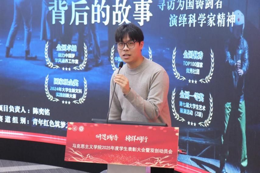 本次大会表彰了2025年度获得各级各类荣誉奖励的先进集体和优秀个人,包括在党内、团内表彰中获奖的集体5个、个人19人,国家奖学金获得者7人、专项奖学金获得者5人、校级奖学金获得者17人,校级先进集体4个,社会实践及双创竞赛先进集体17个、个人11人,员工工作先进个人28人。