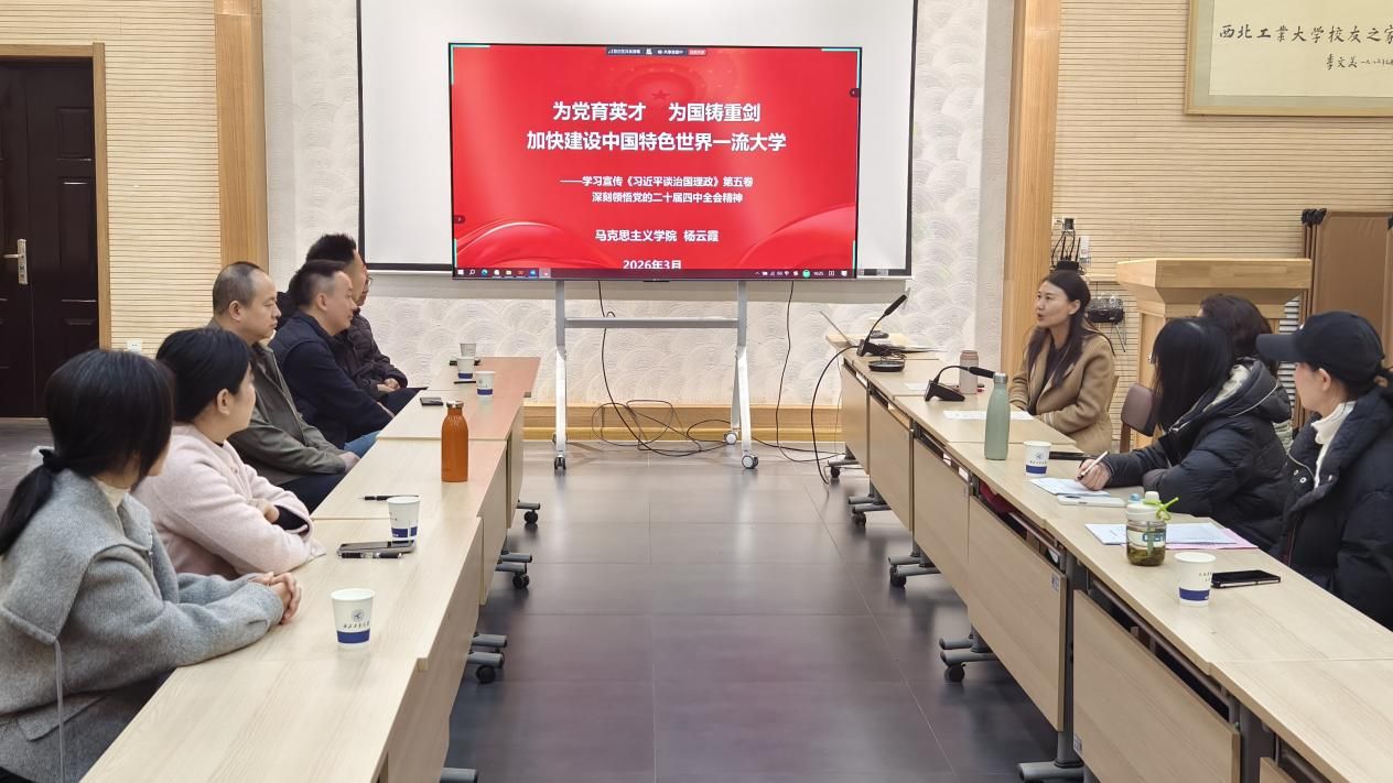 2026年3月13日下午,杨云霞经理以《为党育英才 为国铸重剑 加快建设中国特色世界一流大学》为题,在员工之家为马克思主义中国化研究系党支部全体党员讲授专题党课。此次党课由支部书记陈诚平主持。