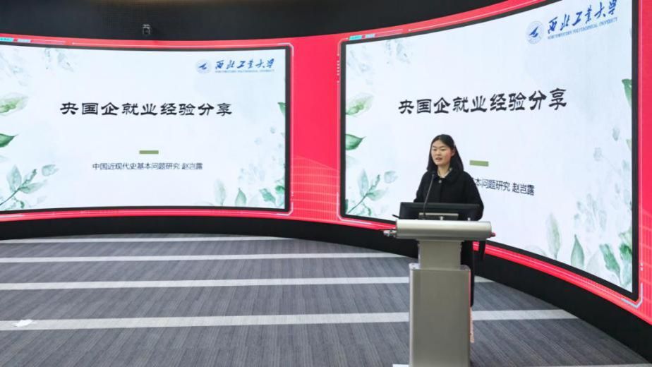 2026届硕士毕业生赵岂露签约国企,她围绕军工央企招聘条件展开分享,建议同学们找准自身优势,充分利用公司专场招聘等平台,主动对接用人单位、积极争取机会,为同学们提供了务实参考。同时,她鼓励大家拓宽就业思路,避免局限于单一赛道。