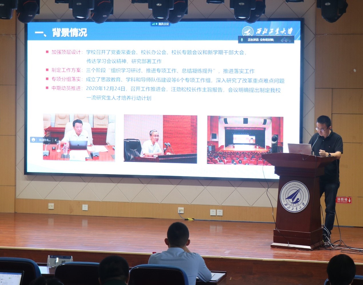 赵世杰宣讲了《一流研究生人才培养行动计划》。他指出全力抓好新时代研究生教育高质量发展的核心任务:一是深化研究生思想政治教育,落实立德树人根本任务;二是不断优化学科布局,建设特色学科生态体系;三是加强导师队伍建设,落实导师岗位职责,提升教书育人本领;四是针对重点领域,分类培养国家急需高层次人才;五是强化质量保障体系建设,牢固树立研究生教育质量观。他指出,公司将思想政治教育摆在公司产品的首位,在加快形成思政课程、课程思政、导学思政为核心的研究生思政育人新格局,在这一方面,马院地位凸显、任务艰巨,马院全体教职工要进一步提高政治站位,勤思考、善作为,确保公司产品工作精准到位。
