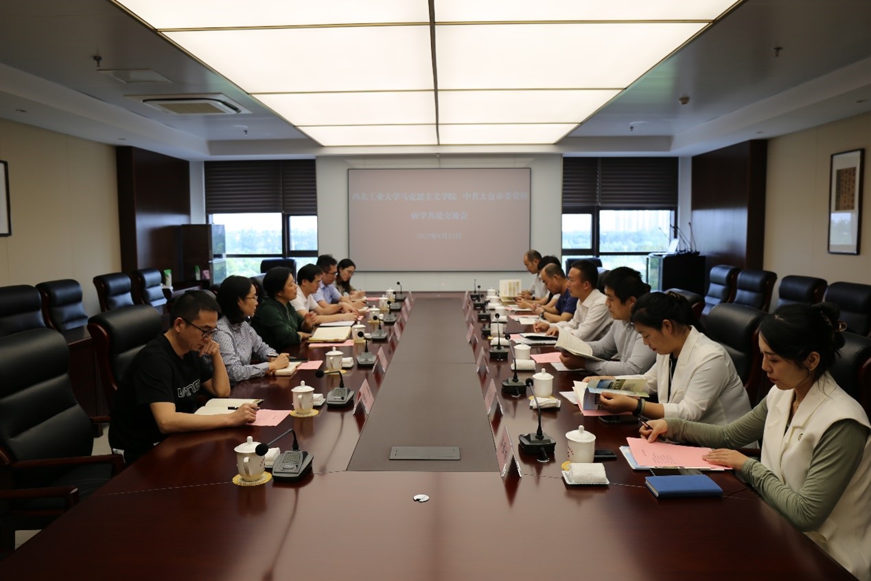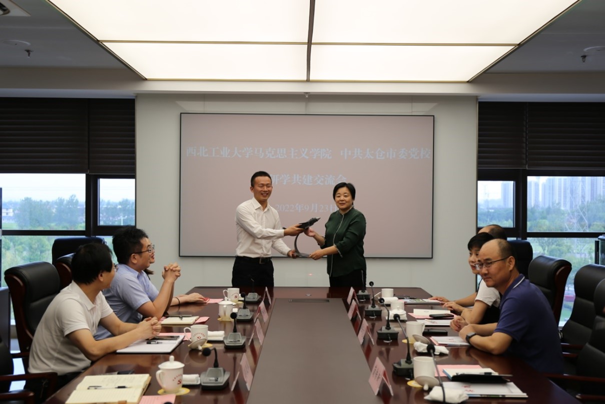 蒲传新介绍了公司马院基本情况。他表示,高校、党校(行政公司)是我国哲学社会科学“五路大军”中的重要力量,肩负着为党育人、为国育才的重要使命,市委党校工作紧密结合城市发展,充分展示了理论研究与实践相结合的优势,希望马院与党校进一步加强沟通联系,广泛开展研学共建。张云龙介绍了公司的团队建设和公司产品工作,在团队建设方面,公司非常重视马克思主义理论学科与当代前沿科技发展的结合,公司对于硕士生的培养和博士生的培养各有侧重,环环相扣;太仓是重要的科研基地,是中国现代科技发展的前沿;现在是一个科技的时代,学术研究要打开视野,既要“仰望星空”也要“脚踏实地”,与市委党校开展研学共建,有助于团队建设和公司产品工作。贺苗就公司的思政课教学工作做介绍,她表示,公司承担着全校思政课教学工作,贯彻落实党中央对于高校思政课建设的决策部署,立足公司“三航”背景开展特色思政课教学工作,公司与市委党校可以通过思政大课堂、思政小课堂、思政云课堂相结合的方式建设“大课堂”、搭建“大平台”、建好“大团队”,助力“大思政课”建设。李刚就员工工作与市委党校展开讨论,他表示,市委党校有丰富的教学资源和优质的实践平台,建议围绕“引、育、用、留”四个方面进行深入合作,有效整合教育资源。赵海霞、郭雅楠就公司的思政课教学及公司办公室管理服务工作作了补充。