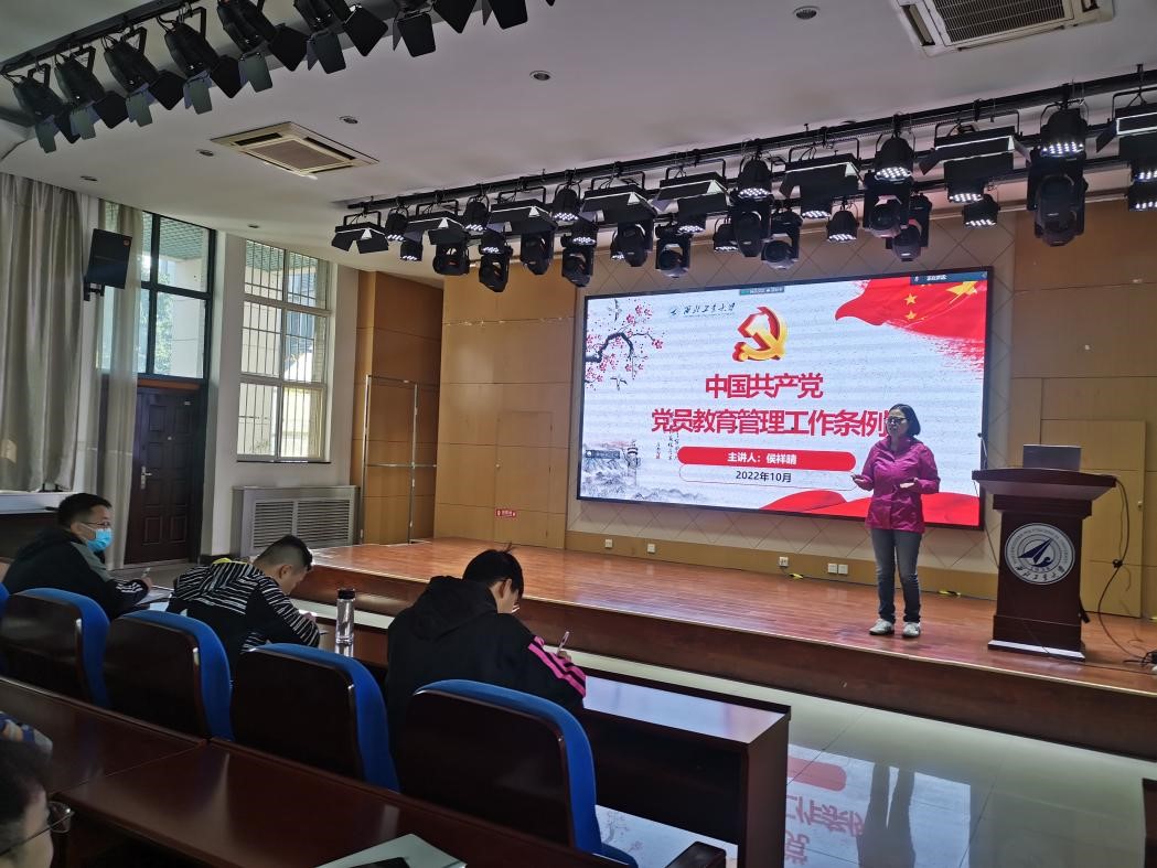 最后,侯老师结合自己的工作实际,再次强调了党员教育管理工作的重要性及对每个人的影响,使同学们进一步提高了对党的认识,端正入党动机,同时她还希望同学们脚踏实地,坚守初心,成为一名严谨、认真、合格的高校员工共产党员。