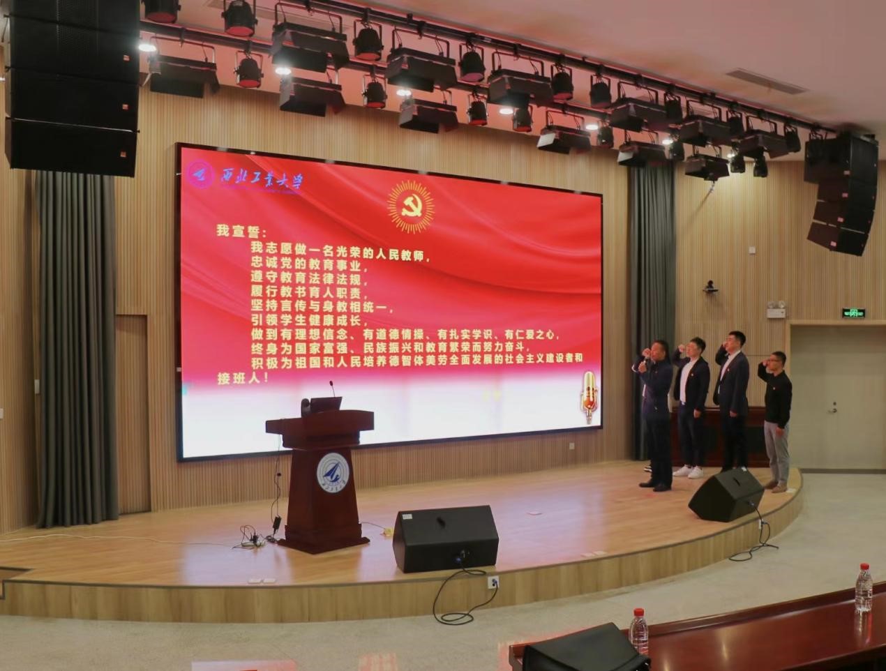 接着,举行了庄严的思政课教师从业再宣誓暨新进教师入职宣誓仪式。全体教师右手握拳,面对党徽庄严宣誓,立志成为“四有”好老师,终身为国家富强、民族振兴和教育繁荣而努力奋斗,积极为祖国和人民培养德智体美劳全面发展的社会主义建设者和接班人。掷地有声的誓词,是每一位教师对教育事业的庄严承诺。