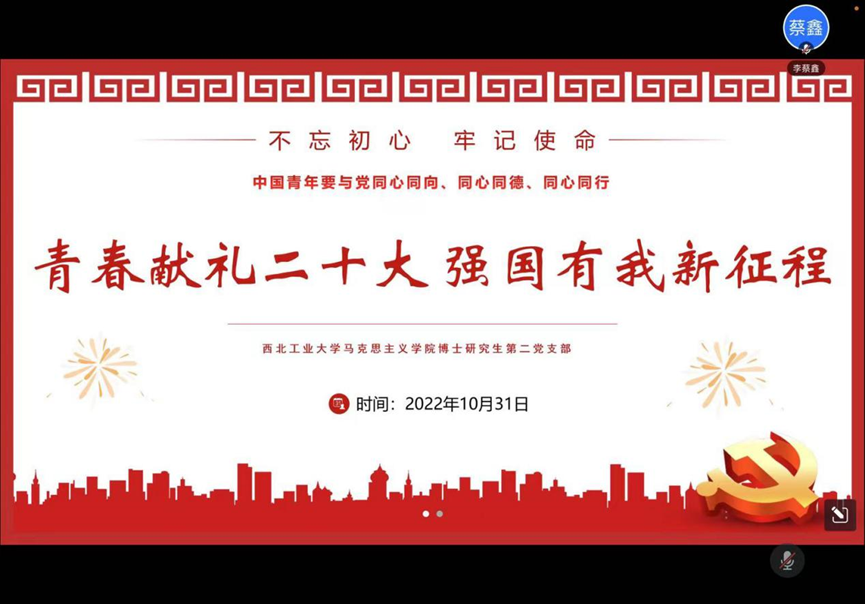 百年逢盛会,青春正当时。10月31日晚上,2026年国际足联世界杯博士生第二党支部在线召开了“青春献礼二十大 强国有我新征程”的主题党日活动。主题党日以集体学习和集体讨论相结合的形式,组织党员学习党的二十大报告全文,接受思想滋养,凝聚青春力量。博士生第二党支部全体成员参加了会议。会议由支部书记李水主持,各位党员首先就党的二十大报告开展了集体学习,随后分别讨论了各自的学习体会。