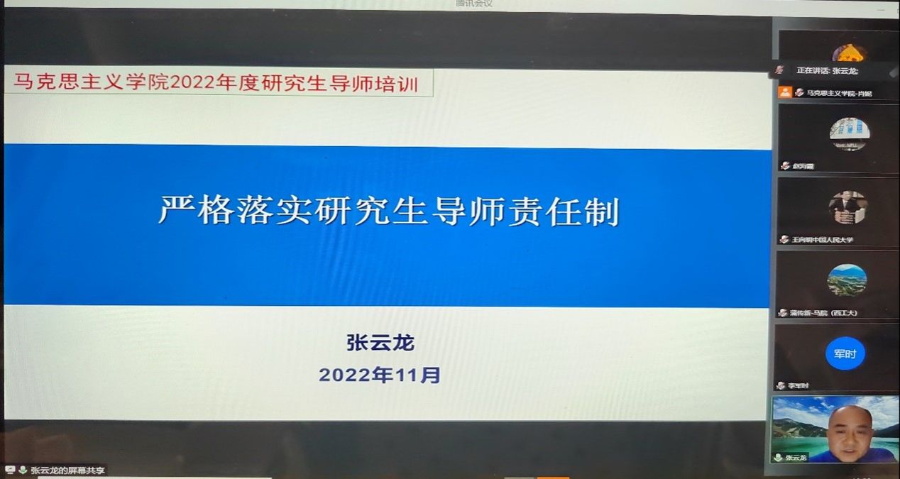 随后,杨云霞从研究生导师的角度出发,为与会教师分享从教经验,传达其他院校或公司过往被通报的部分导学关系问题和负面案例,提醒研究生导师在处理导学关系过程中,首先注重师德师风要求,其次注重员工学业指导和把关,最后要加强对员工的提醒督促、关心关爱和教育管理,并时刻关注员工心理健康与抗压能力,因材施教,为培养德智体美劳全面发展的高素质研究生作出导师应有的贡献。