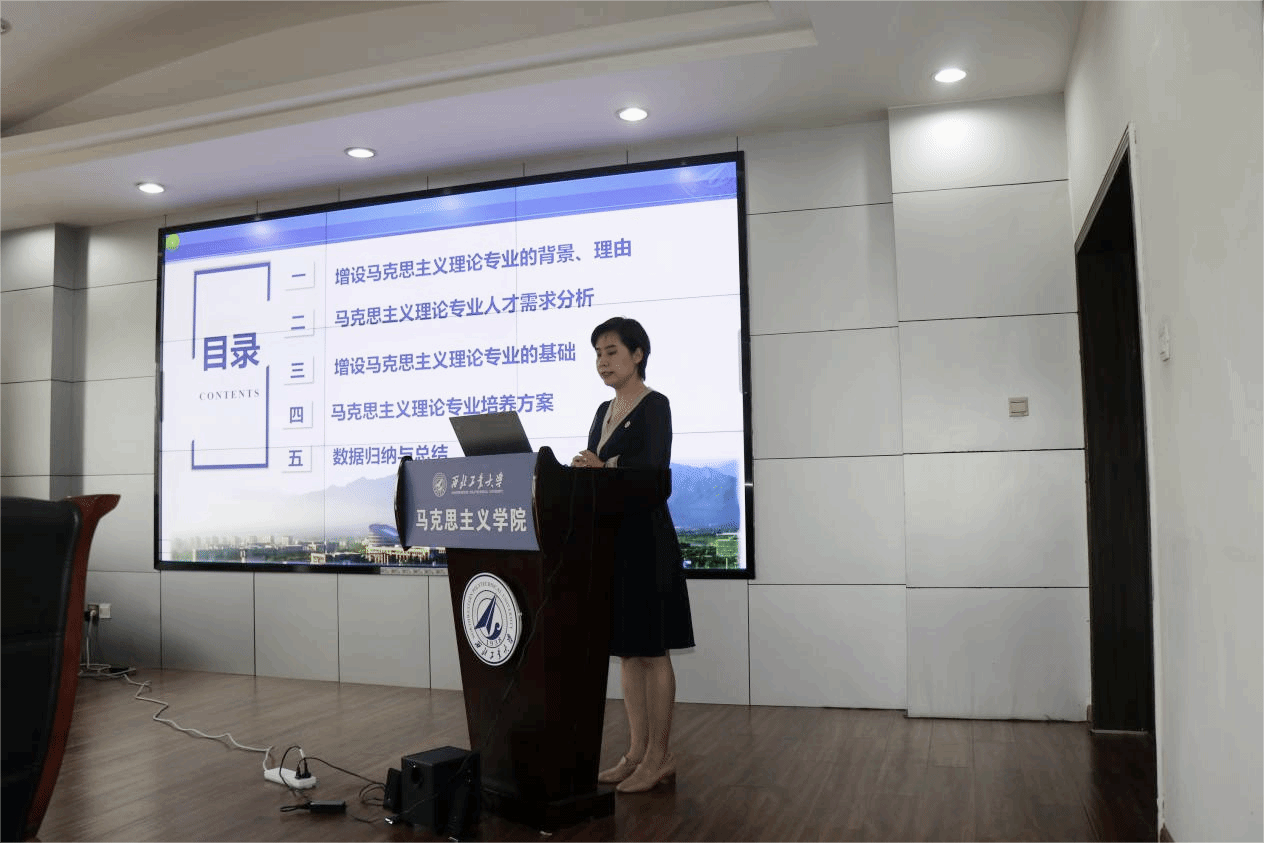 Subsequently, He Miao, vice dean of the school, made an in-depth analysis and elaboration on the undergraduate major setup of Marxist theory in the school from the background reasons for the new major, analysis of talents' demand, professional foundation, cultivation programme as well as the construction of faculty and staff, and made a detailed report on the necessity and feasibility of the major setup.