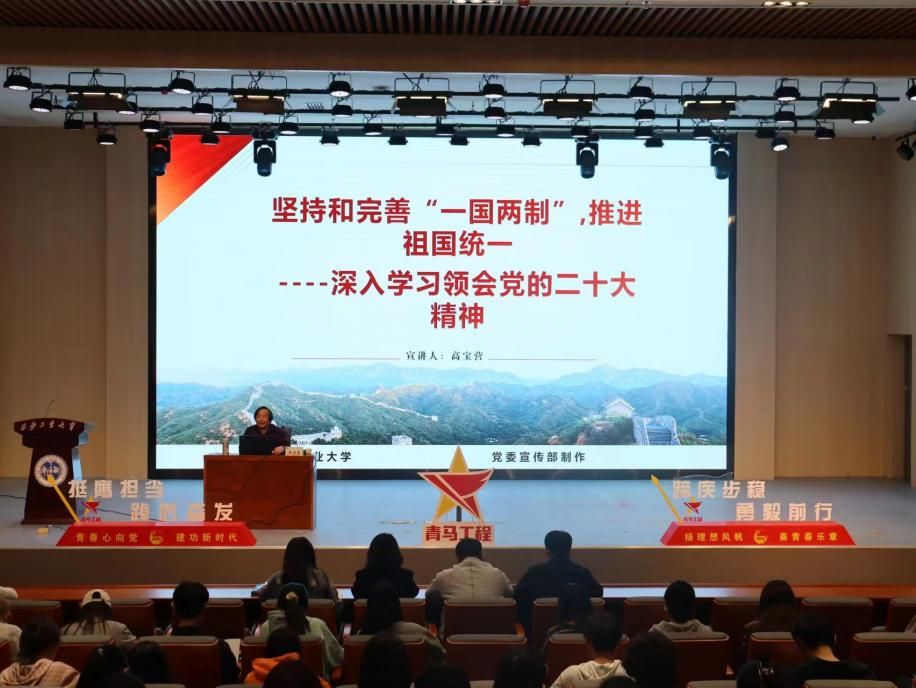 党的二十大召开以来,高宝营老师在全校形势与政策课上率先专题讲授党的二十大精神,同时在思想道德与法治等课上融入讲授党的二十大精神。此外,他作为公司党的二十大精神宣讲团主要成员为洛阳市中航光电党校、西工大后勤产业集团和西安工业大学团委等多家单位进行了宣讲,教学效果好,并由此形成了自己的特色示范课堂。