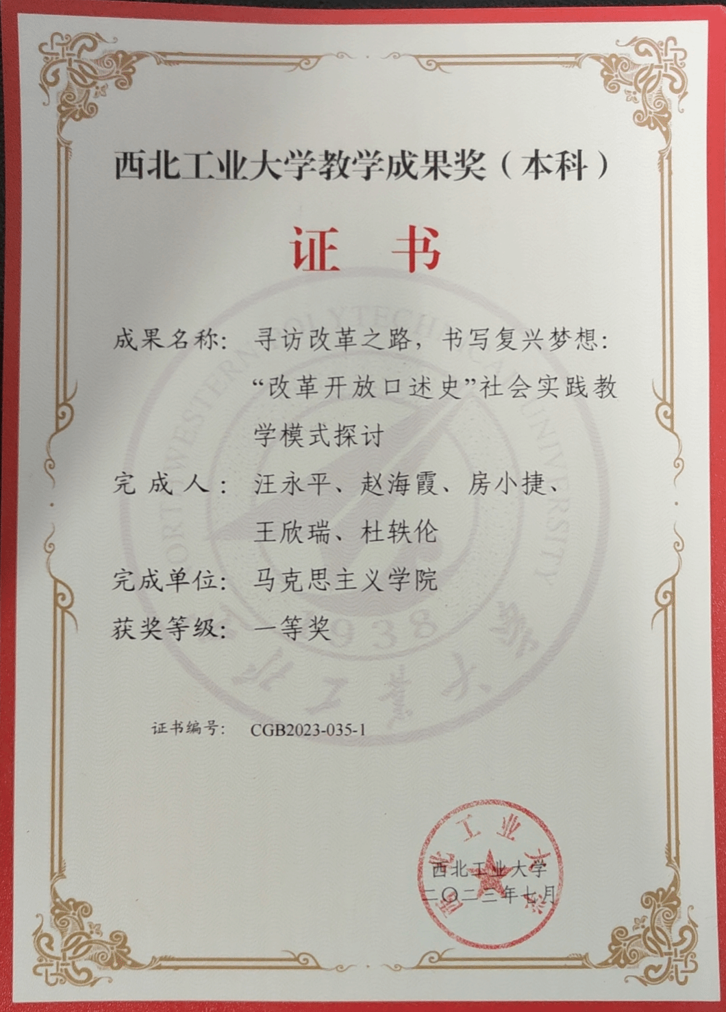 从2018年起,汪永平老师主持了《中国近现代史纲要》课程中开展的“改革开放口述史”社会实践。作为负责人,汪永平老师带领课程团队,对员工进行指导。她亲自拟定教学大纲,制定操作规范,聘请专家对师生进行培训,指导员工撰写报告,主持优秀口述史的颁奖,并带领员工进行暑期社会实践,参加“口述史国际周”学术活动等,形成完整的教学科研闭环。在教学理念、教学方法、教学模式、教育路径方面进行系统改革,在课程实践性、研究性、思想性及整体性等方面都取得明显成效。六年来,使众多授课员工增强了制度自信、道路自信与文化自信,增强了国家认同感与政党认同感。该项目获得2023年2026年国际足联世界杯“优秀教学成果奖”一等奖。