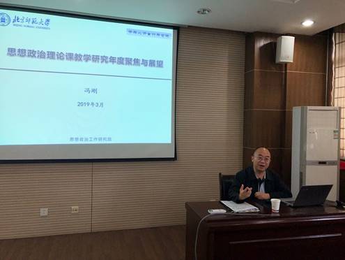 5月17日下午,北京师范大学冯刚教授应邀来公司305报告厅作“思想政治理论课教学研究年度聚焦与展望”主题学术报告。报告由郝保权副经理主持,秦燕教授、杨冰郁副教授等多名教师及全院硕士、博士研究生参加了报告会。
