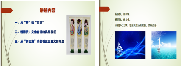 汪教授最后总结:新国货表征着中国智慧、中国价值和中国审美,隐喻着道路自信、制度自信与文化自信,呈现着中国力量、中国动能与中国未来。每一个新国货,都是一则中国故事,一张中国名片。开启信心之锚,新国货正扬帆起航,驶向蓝海。