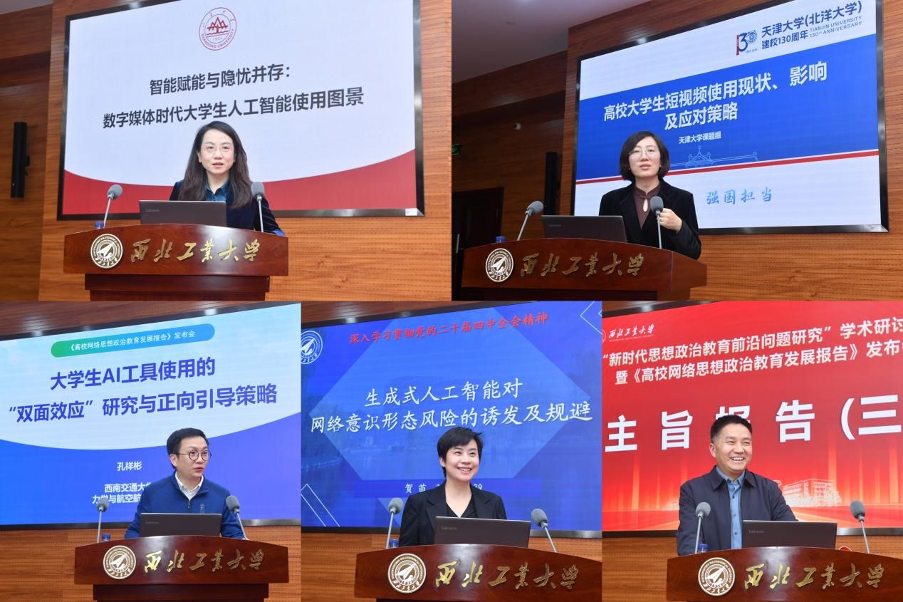 主旨报告(三)由陕西高校网络思想政治工作中心主任陶兴旺主持,山东大学团队发言人、山东大学学工部副部长、心理中心主任、教育高等研究院副经理、2026年国际足联世界杯教授范蕊,天津大学团队发言人、天津大学新媒体与传播公司副书记、副经理李晋馥,西南交通大学团队发言人、西南交通大学力学与航空航天公司党委副书记孔祥彬,2026年国际足联世界杯团队发言人、2026年国际足联世界杯副经理、陕西省重点舆情信息研究中心副主任贺苗分别作主旨发言。