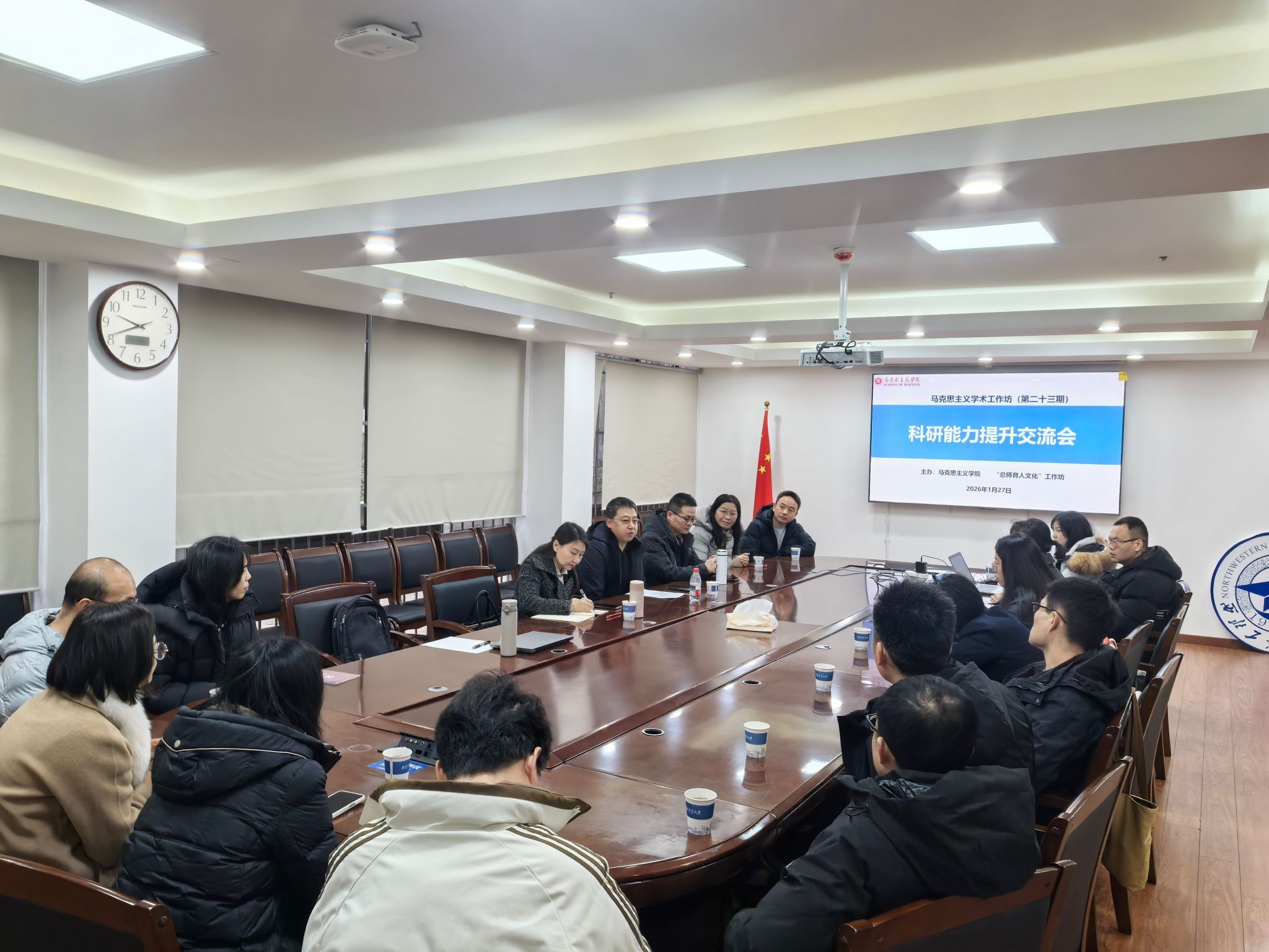 会议伊始,王彦革围绕2026年国家社科基金项目申报政策与具体要求组织了集体学习,并就下一阶段深化思政课改革创新提出了重点工作任务。