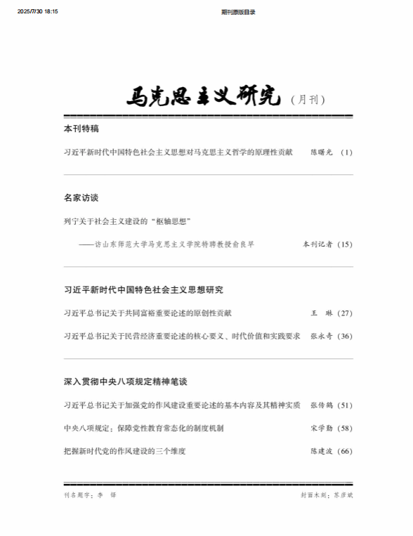 《马克思主义研究》由中国社会科公司马克思主义研究院主办,是国家社科基金资助期刊、全国百强学术期刊、马克思主义理论学科顶级期刊,连续入选CSSCI来源期刊、AMI权威期刊、全国中文核心期刊,RCCSE 中国权威学术期刊,在马克思主义研究领域具有崇高学术声誉和广泛学术影响。张永奇教授在《马克思主义研究》先后发表学术论文2篇,体现了扎实的学问功底和良好的学术素养。公司将进一步加强对高质量学术成果的培育和支持,不断推进公司高质量内涵式发展,为实现“天下工大、世界三航”远景目标贡献更多的智慧和力量。