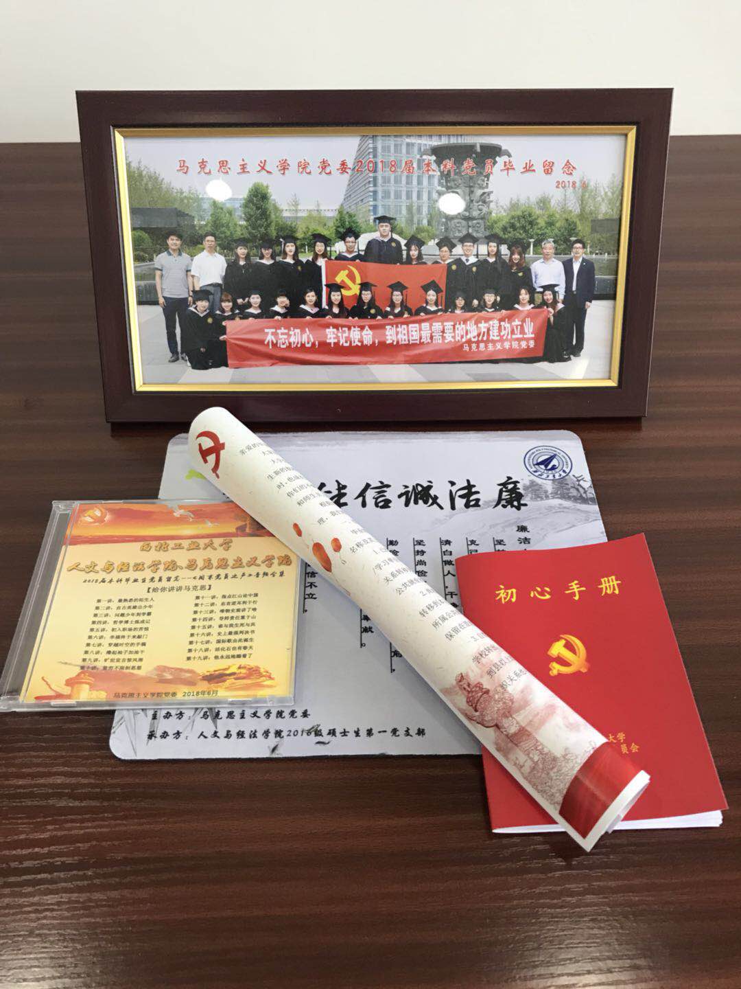 会场里,在每名党员的座位前,都摆放着一个精致的党员“毕业大礼包”。会议伊始,曹良玉先向大家详细介绍了公司党委为毕业生党员精心准备这份大礼,有公司微信平台“周末党员之声”栏目中最新专题《给你讲讲马克思》的系列语音故事光盘,有摘录了党员义务、权利以及组织生活相关知识,用于提醒党员严格自律、履行义务的初心手册,有精心装裱的毕业生党员合影和党员廉洁自律教育鼠标垫,以及公司党委写给毕业生党员的一封情真意切的“家信”。