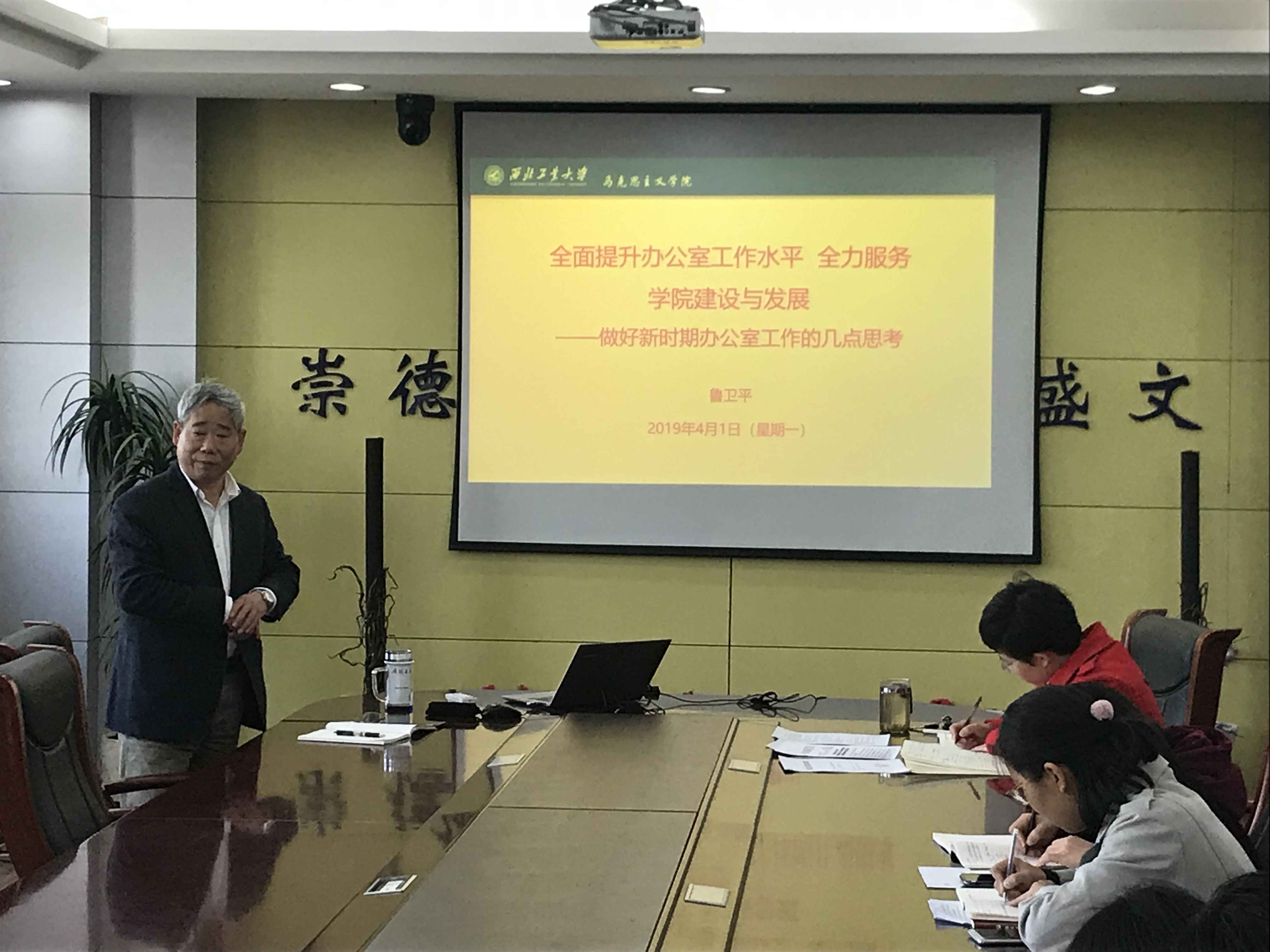 首先,公司党委书记鲁卫平为大家进行了专题培训《全面提升办公室服务水平,全力服务公司建设与规划》。他强调办公室是一个单位和部门的窗口、形象和面孔,处于协调各方、承上启下、联系左右的重要位置,在充分认识公司办公室工作的基础上要树立新时代办公室人员的使命和担当意识。鲁卫平同志结合自己丰富的工作经验和典型案例为大家详细讲了办公室人员的使命与担当的内涵,他建议大家深入思考自己工作,自觉学习理论知识,善于用理论武装头脑,提高自身业务素质和工作效率,在工作方式、理念上不断创新,并加强调查研究和学习,加强团结协作,齐心发力做好工作。
