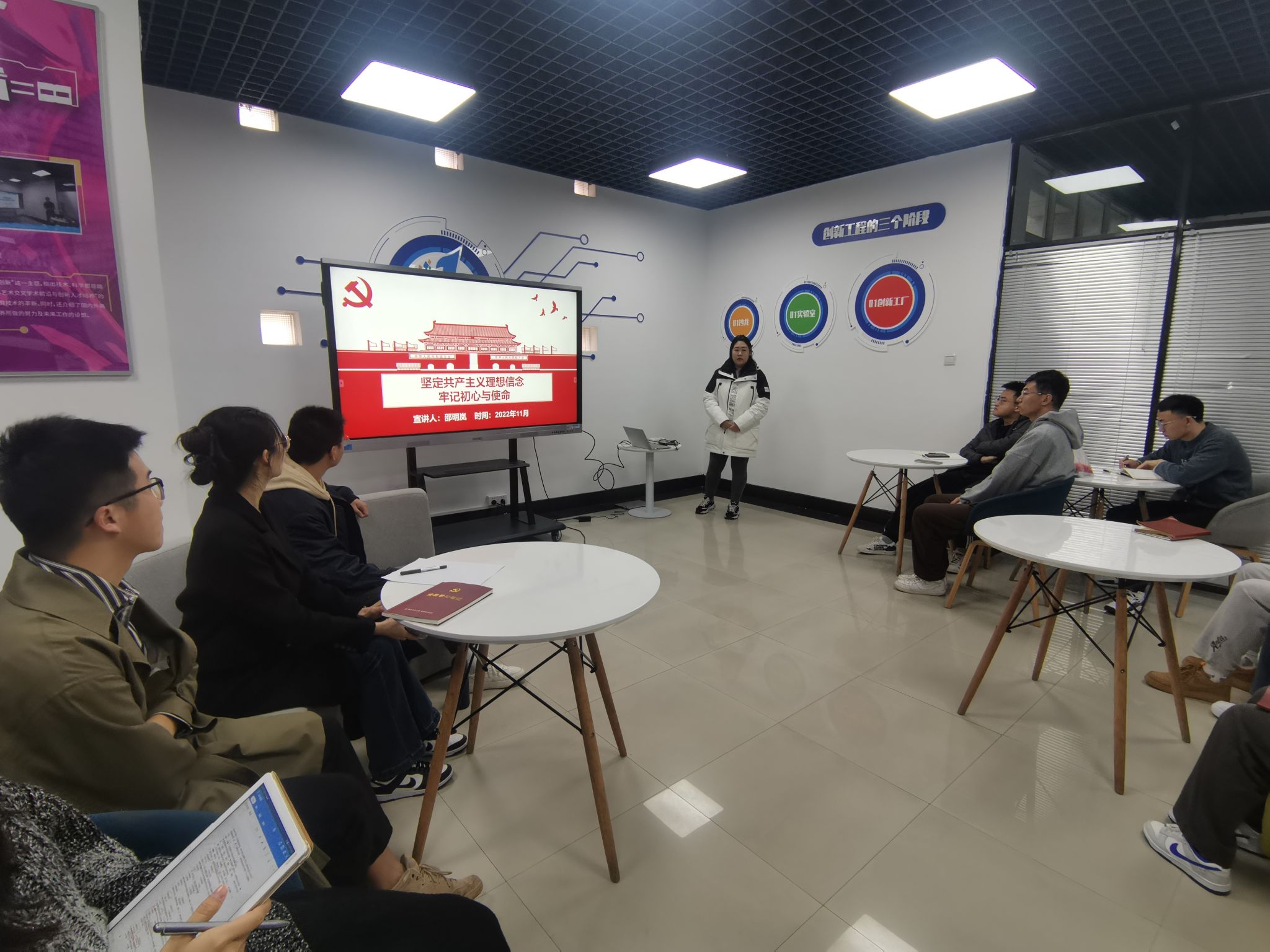 首先,公司党的二十大精神员工宣讲团的两位同学从不同角度切入,深入解读党的二十大报告。赵桐瑶同学以《以青春之我,谱写盛世华章》为主题,从中国式现代化的探索之路出发,指出广大青年是探索中国式现代化历史进程中的先锋力量,并结合西工大学子在科技攻关、脱贫攻坚、疫情防控等方面的优异表现,诠释了中国青年的担当;邵明岚同学以《坚定共产主义理想信念》为主题,指出新时代青年要坚定理想信念,把好理想信念“总开关”,自觉做共产主义远大理想和中国特色社会主义共同理想的坚定信仰者和忠实践行者。