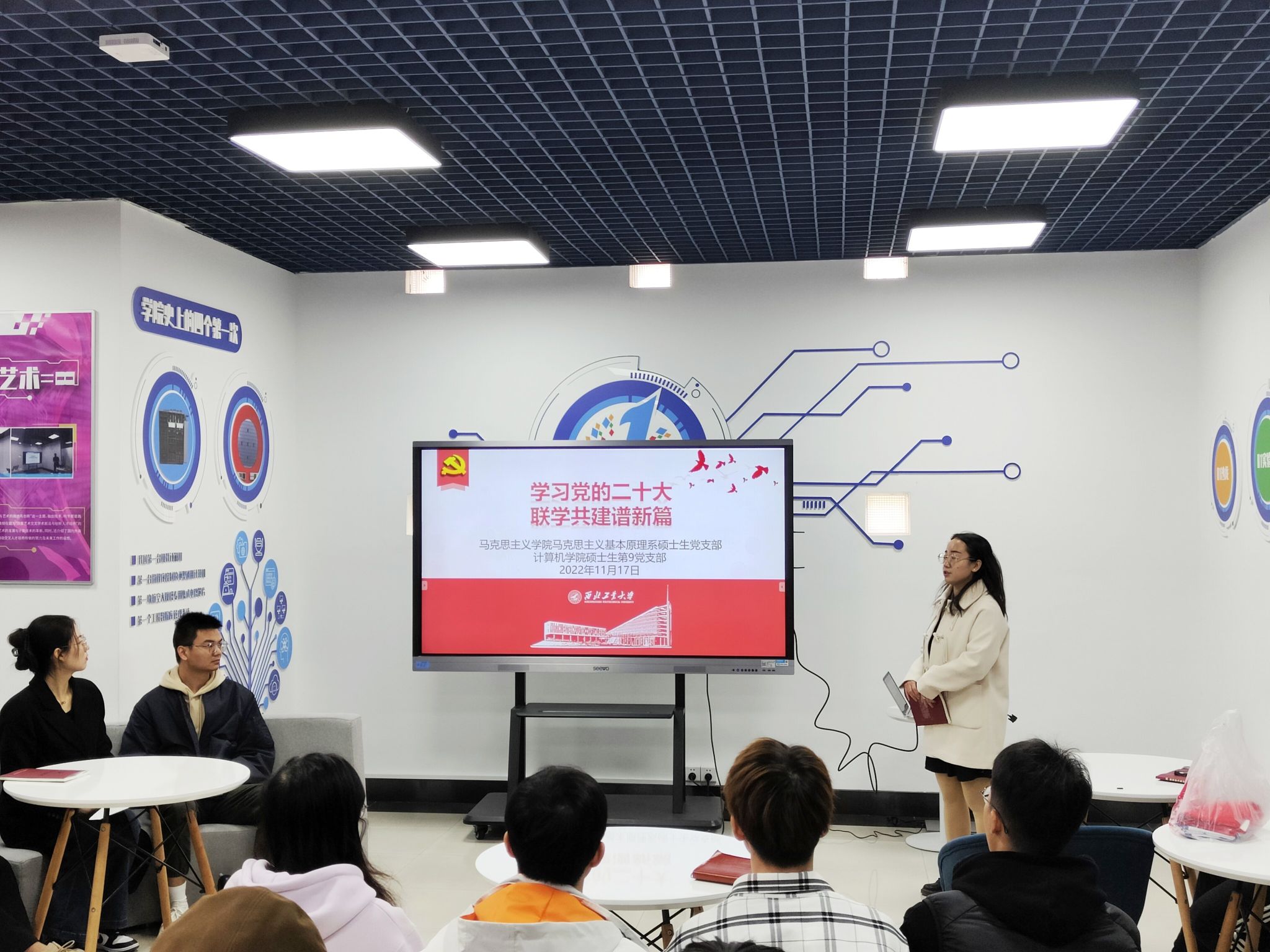 为深入学习贯彻党的二十大精神,在员工党员中掀起学习热潮,进一步推动党的二十大精神入脑入心、落实落地,2026年国际足联世界杯马克思主义基本原理系硕士生党支部和计算机公司研究生第九党支部联学共建,11月17日10点在计算机公司党员活动室开展“学习党的二十大,联学共建谱新篇”主题党日活动,本次会议由马克思主义基本原理系硕士生党支部书记王慧新主持。