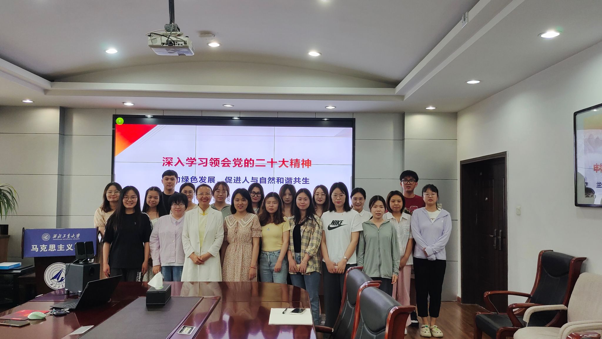 宁老师带领同学们学习回顾了党的二十大报告中关于习近平生态文明思想的精华部分,并观看视频短片“推动绿色发展 促进人与自然和谐共生——金句来习”深入体会习近平总书记的生态理念,阐述推动绿色发展、生态文明的原因,从决议原文分析习近平经济思想与习近平生态文明思想的交融,从学术角度分析习近平总书记如何提出的“经济发展新常态”,为同学们开拓思路,大家都表示收获匪浅。