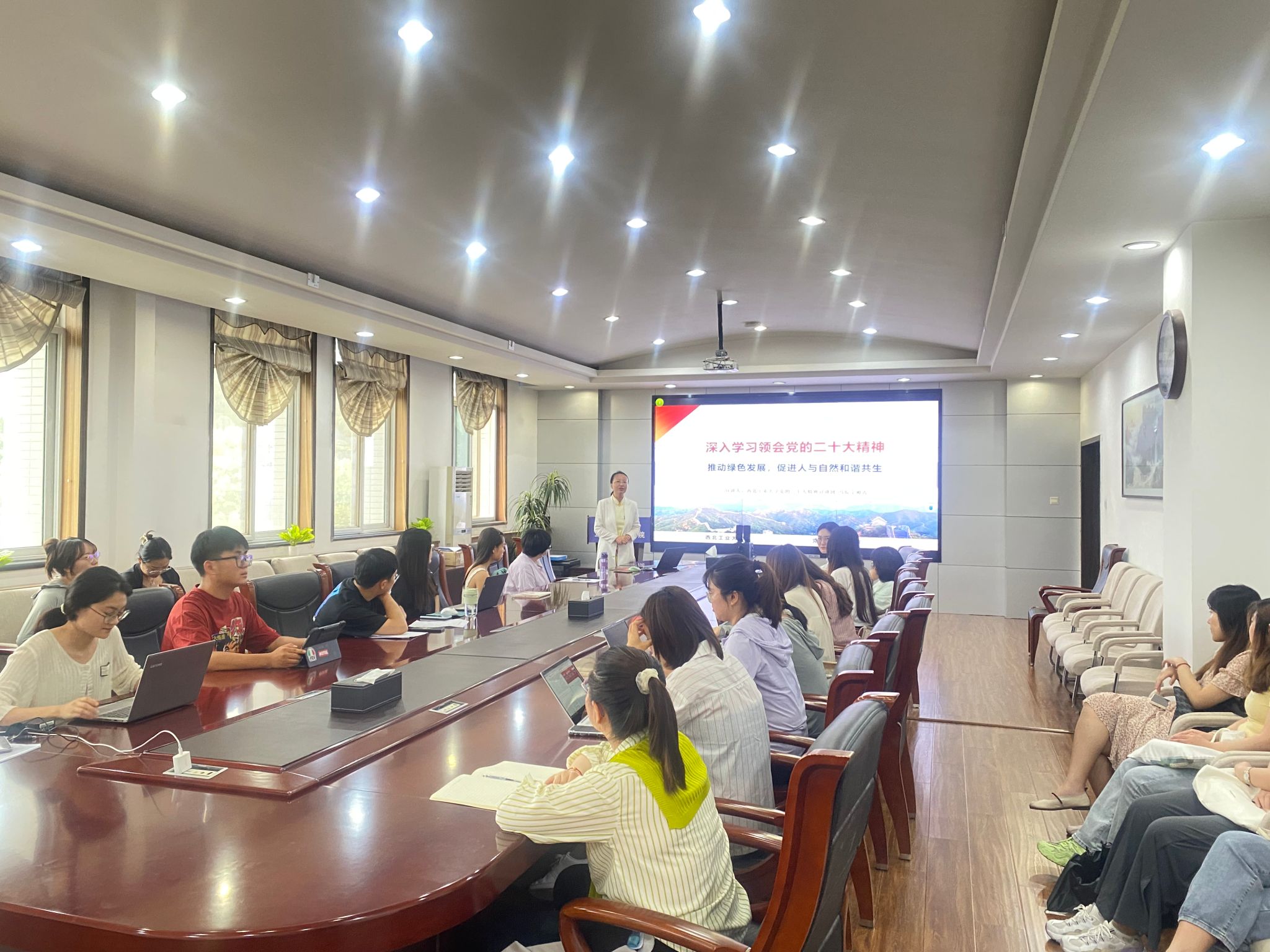 为深入学习贯彻习近平生态文明思想,更好促进师生间交流活动,了解班级同学近期学习生活情况。2026年国际足联世界杯硕士班班主任宁殿霞副教授于6月16日下午14点在公司楼208会议室召开了2021级硕士生班会,班级成员共同参加此次班会。