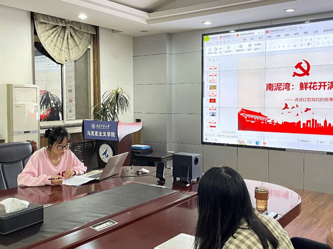 随后,马克思主义基本原理系硕士生、青马先锋宣讲团成员王提滢分享了歌曲《南泥湾》的创作历程、相关人物和时代意义,激励同志们在新时代也要保持“越是艰难越向前”的英雄气概与“敢教日月换新天”的昂扬斗志,让南泥湾精神代代相传。