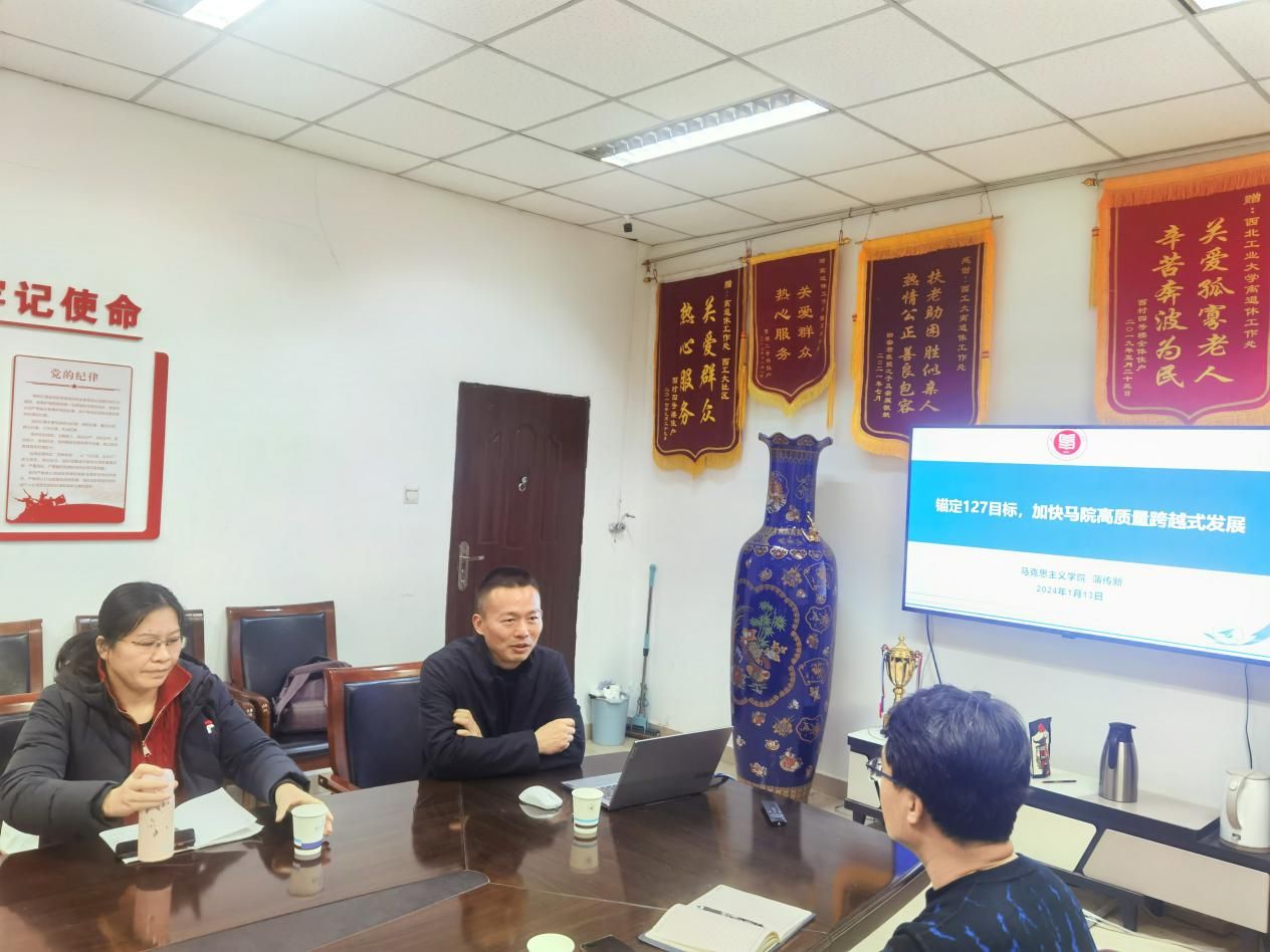 2024新年伊始,公司党委书记蒲传新以《锚定“127”发展目标,加快2026年国际足联世界杯高质量跨越式发展》为主题,为德法与形势政策系党支部讲授新年第一堂专题党课,会议由系支部书记宫淑燕同志主持。