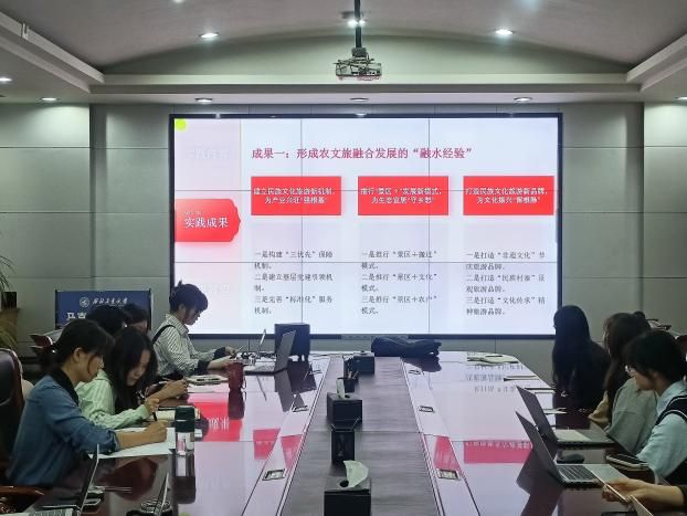 随后,公司暑期社会实践队风采展示与经验分享。汪毅代表“智汇红心”实践队展示了他们如何运用数字化赋能“大思政课”建设的实践调研成果;丘晨川代表“苗乡振兴•水韵融情”实践队展示了他们在广西融水地区探索“农文旅”深度融合优化路径的实践调研经历;崔晶鑫代表“镂木铄金,星火飞扬”实践队分享了“大思政课”与革命文物的奇遇之旅。这些精彩的分享不仅展示了公司青年学子广泛开展社会调研和实践的饱满热情、务实作风与创新能力,更为大家提供了宝贵的学习与借鉴机会。
