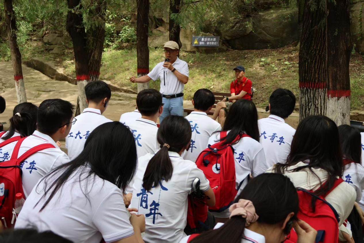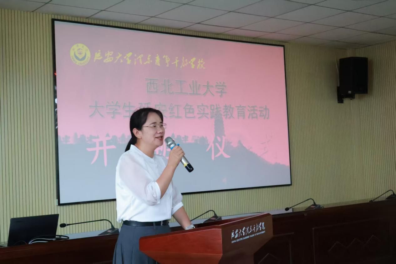 理论课堂的地点选在了三川交汇处的延安大学。这所由我党首创的综合性大学,厚重的红色文化底蕴仍浸润在校舍的一砖一瓦之中。延安大学泽东青年干部公司副董事长王娜为此次实践教育活动致辞并授旗。同行的光电与智能研究院的侯祥晴老师以“积极向党组织靠拢,从撰写入党申请书开始”为题,与同学们开展了一场意义非凡的专题研讨教学。