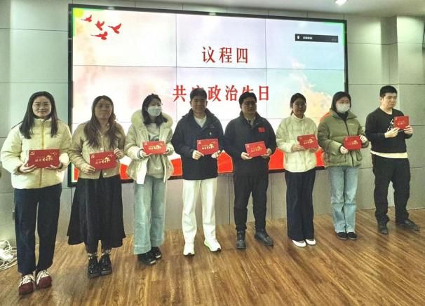 会上,党支部还为在本季度过“政治生日”的党员同志赠送了悉心准备的贺卡与纪念礼物,进一步增强党员归属感和使命感。在邵明岚同志的领誓下,全体党员面向党旗,庄严重温入党誓词,再次坚定理想信念与初心使命。