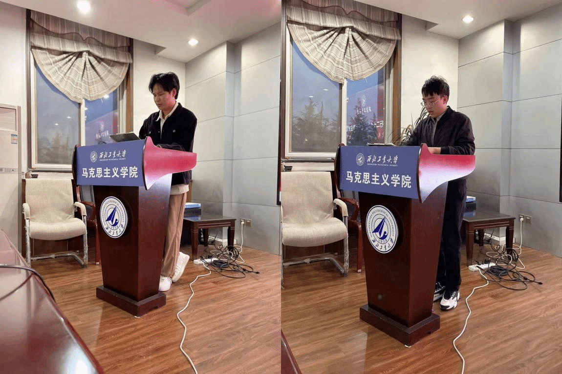 随后马克思主义基本原理系顿昱璇同学谈到,她的第一次宣讲是在近期的主题党日活动上,从马克思主义中国化时代化概念分析、党的百年奋斗历程中重要历史事件的引证入手,阐明“中国共产党为什么能,中国特色社会主义为什么好,归根到底是马克思主义行,是中国化时代化的马克思主义行”的内在逻辑。她还列举了西工大学子关于践行党的二十大精神的丰富生动实践。